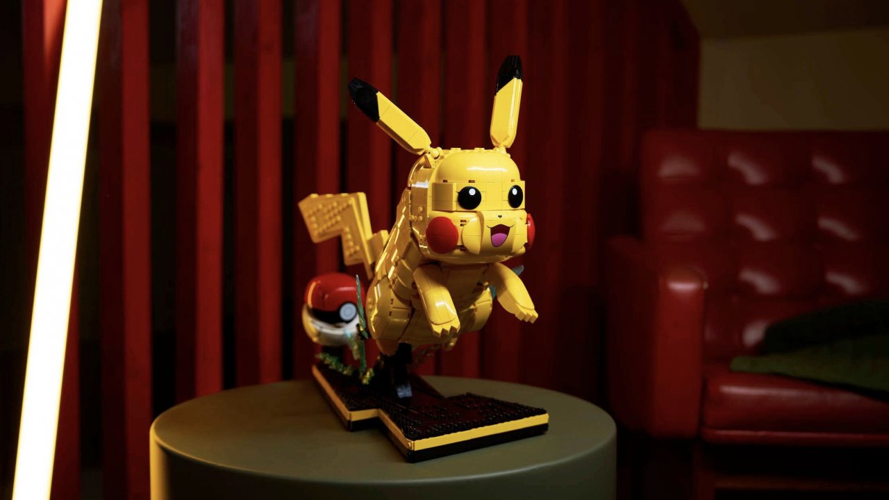 Chiudiamo con il Pokémon più rappresentativo di tutti, quello che è diventato il simbolo del franchise così come Totoro lo è per lo Studio Ghibli: Pikachu, conosciuto da tutti con il suo caratteristico colore giallo e le guance rosse, anche da chi non conosce bene il brand. Rispetto a Eevee, qui siamo su un modello più complesso sia in quanto figura in sé che per il set nel suo complesso, che si compone di ben 2050 pezzi. Montato sulla sua base espositiva, la figura è articolabile in modo da sembrare nell'atto di saltare dalla Poké Ball inclusa, ma va sottolineato un dettaglio: la base ha il numero 25 scritto con mattoncini, a indicare il numero di Pokédex di Pikachu. Un dettagli che i fan ameranno.