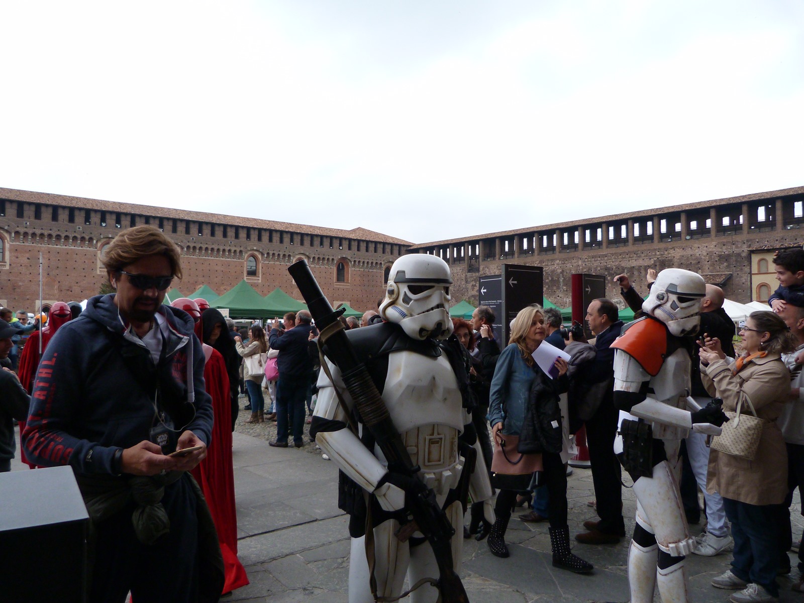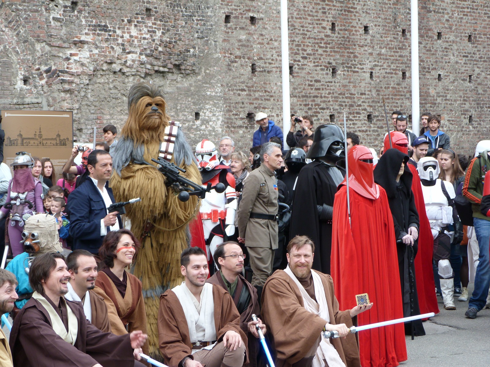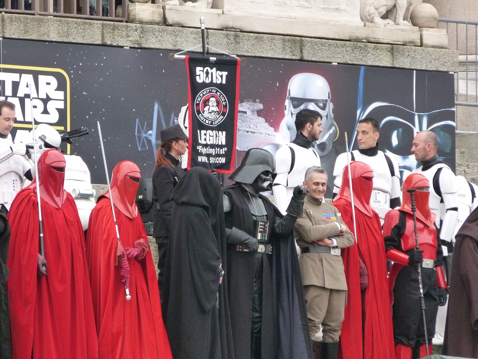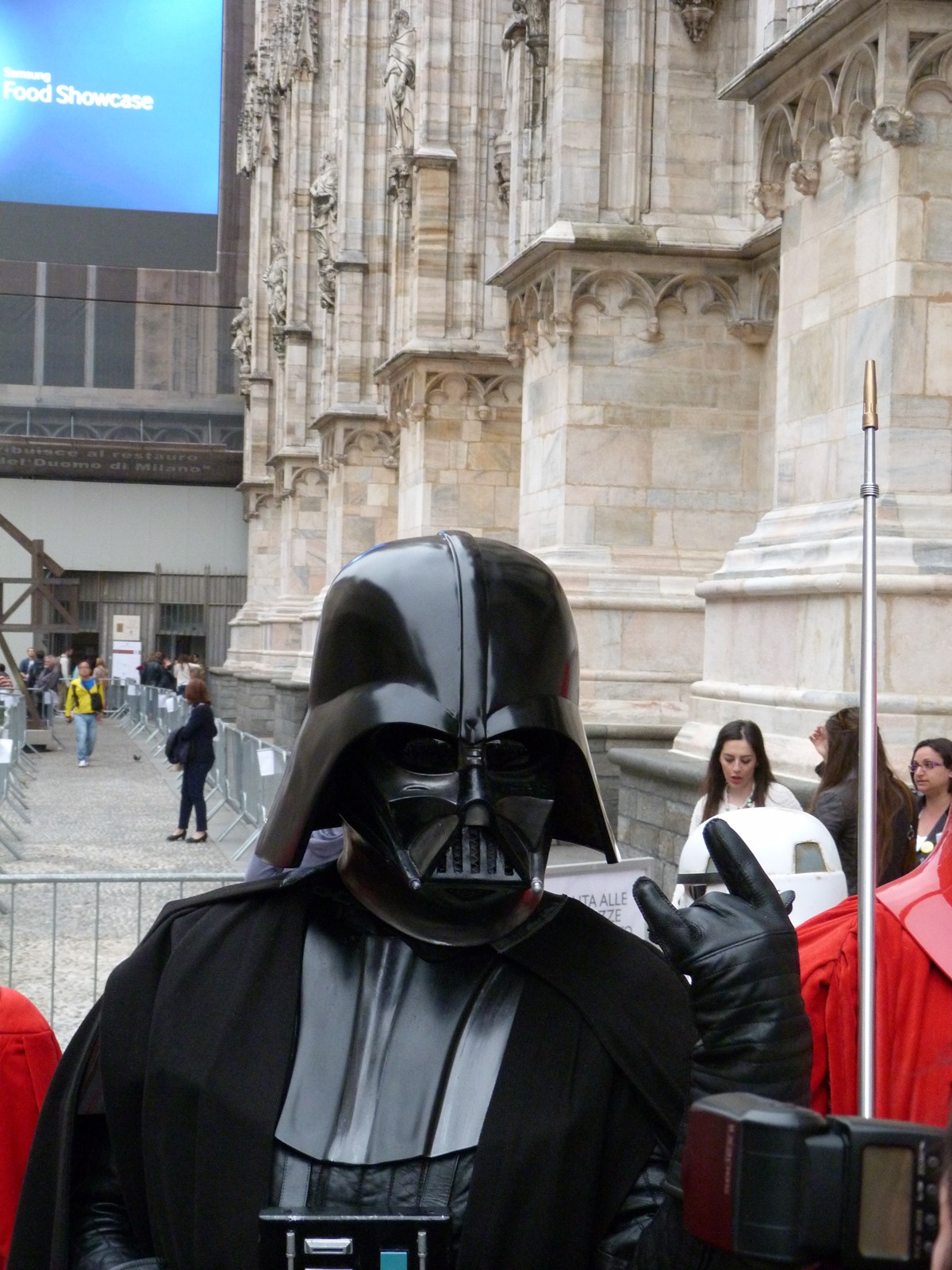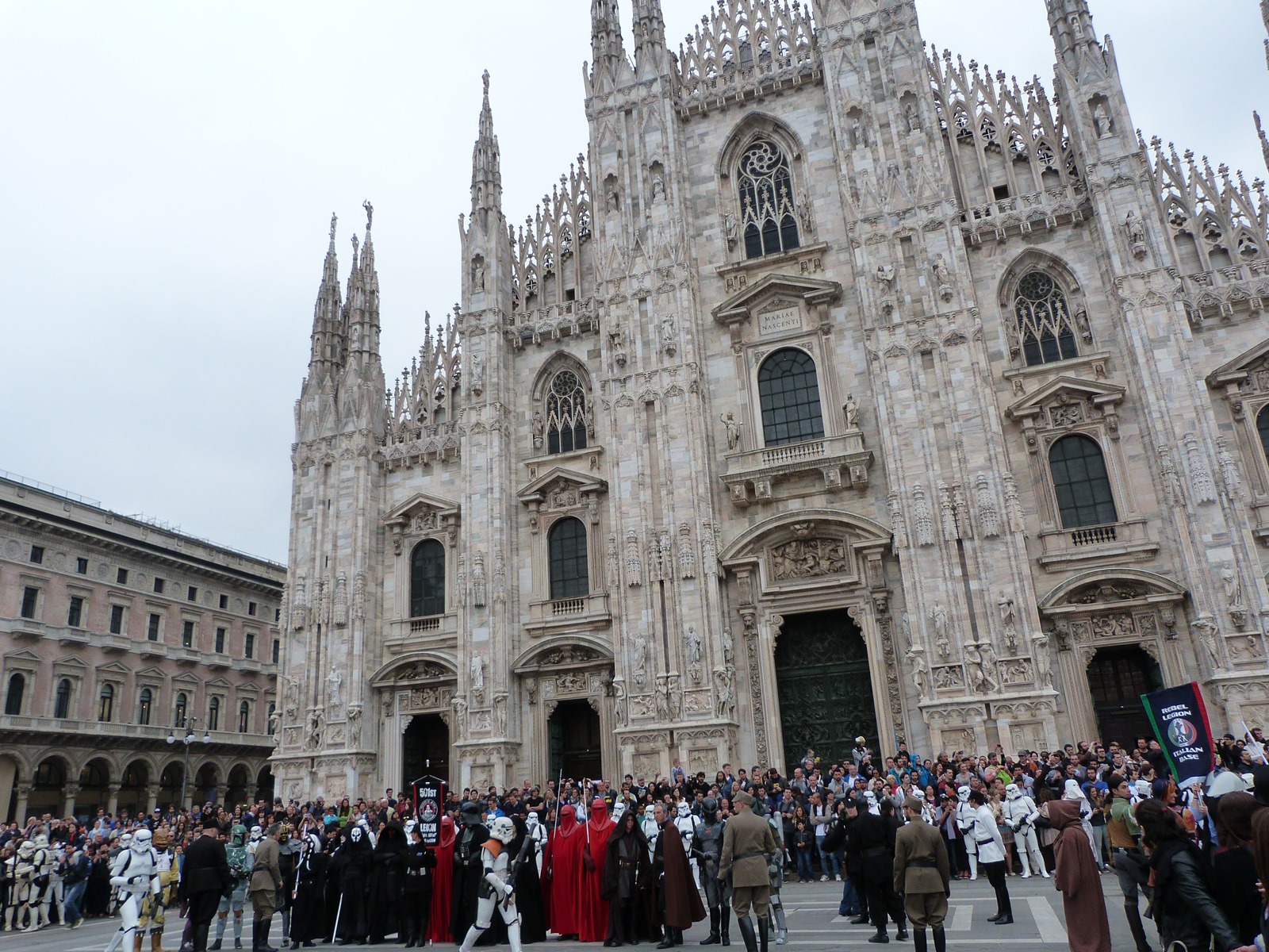 All'arrivo in piazza Duomo erano già innumerevoli i fan di tutte le età in attesa di vedere da vicino i propri personaggi preferiti e le prime spade laser si facevano già intravedere in mano a tanti bambini, ma non solo, mentre gli stormtrooper attendevano l'apparizione dalla Terrazza Mondadori di Darth Vader che ha salutato dall'alto.
