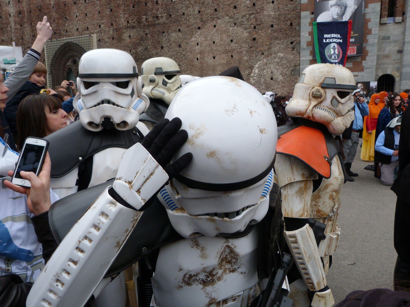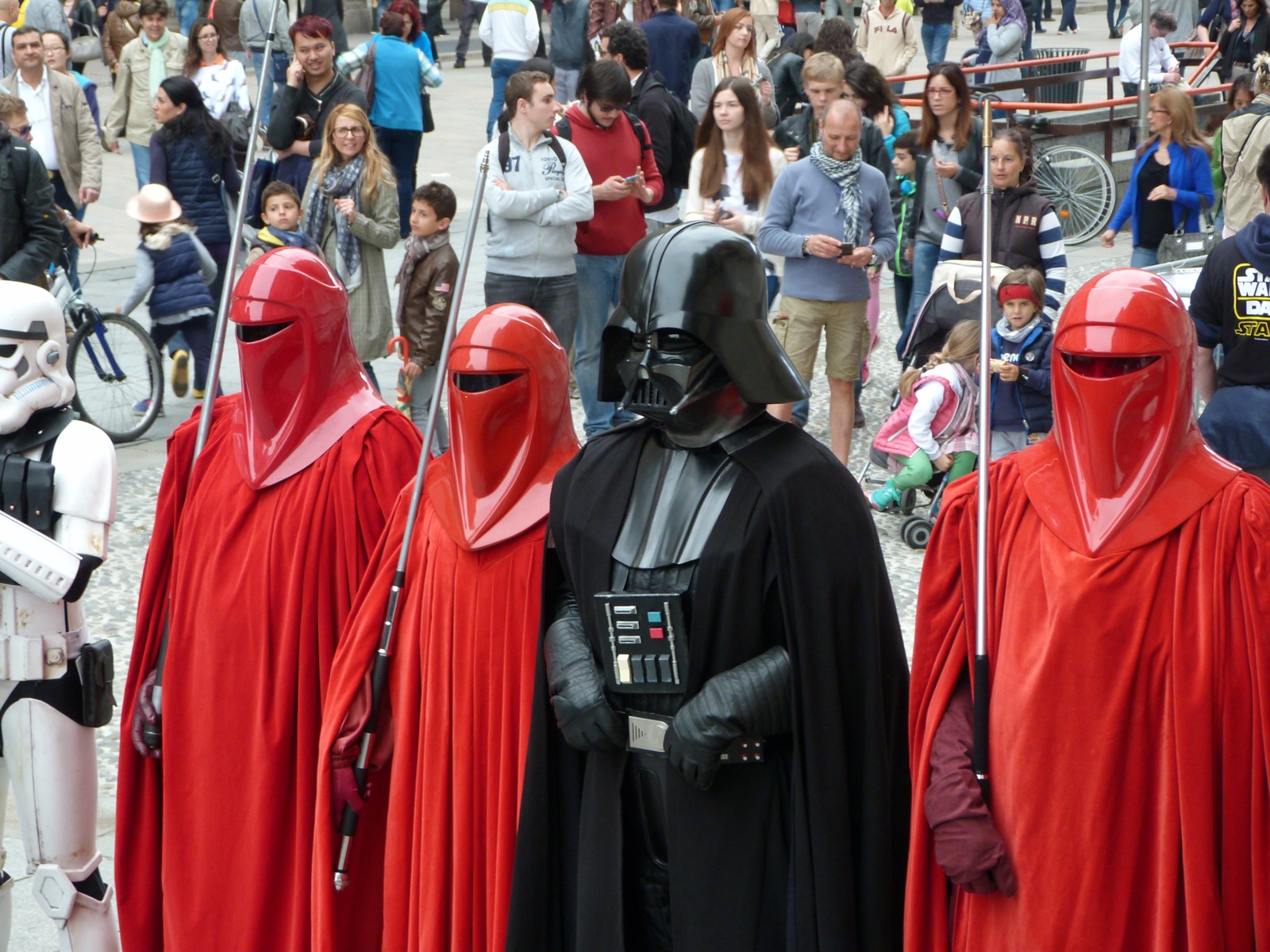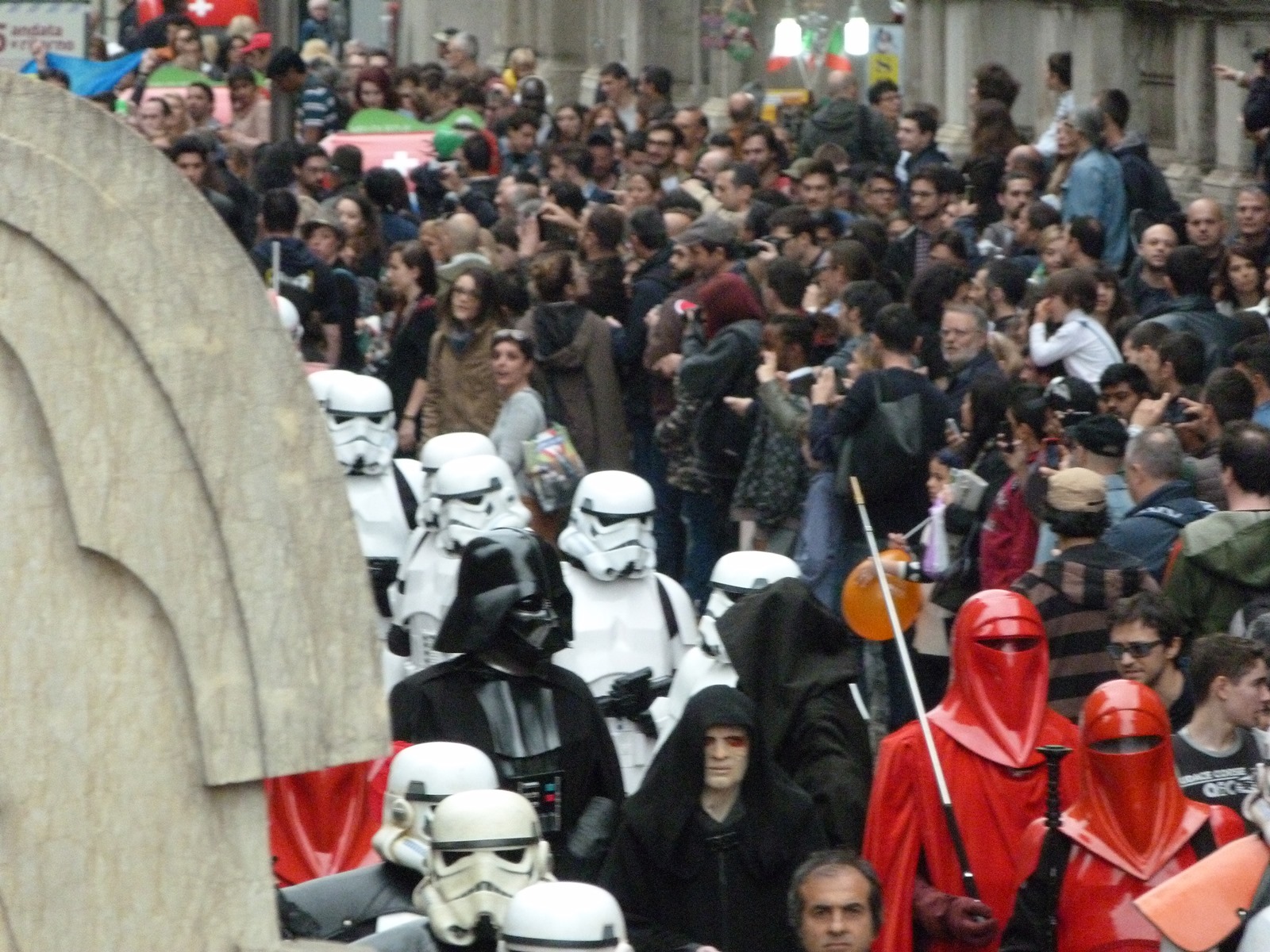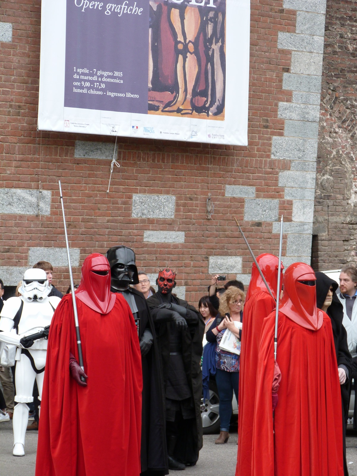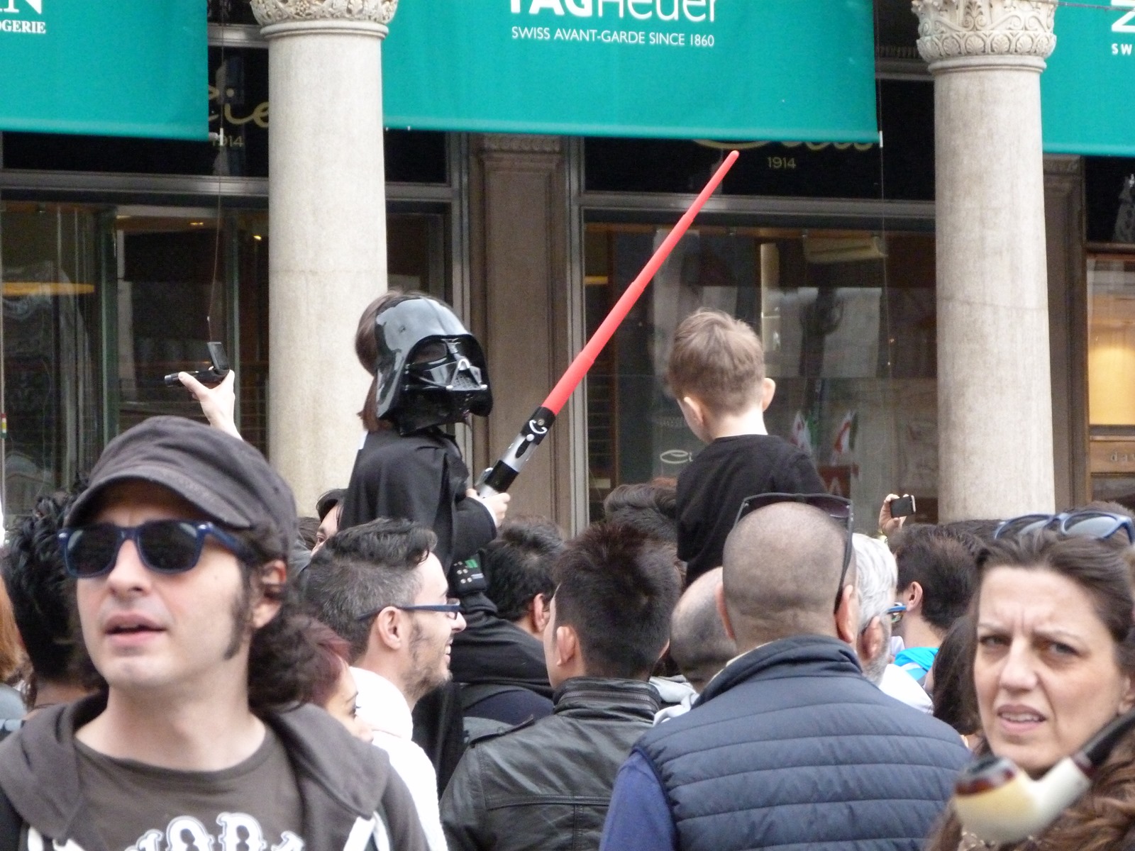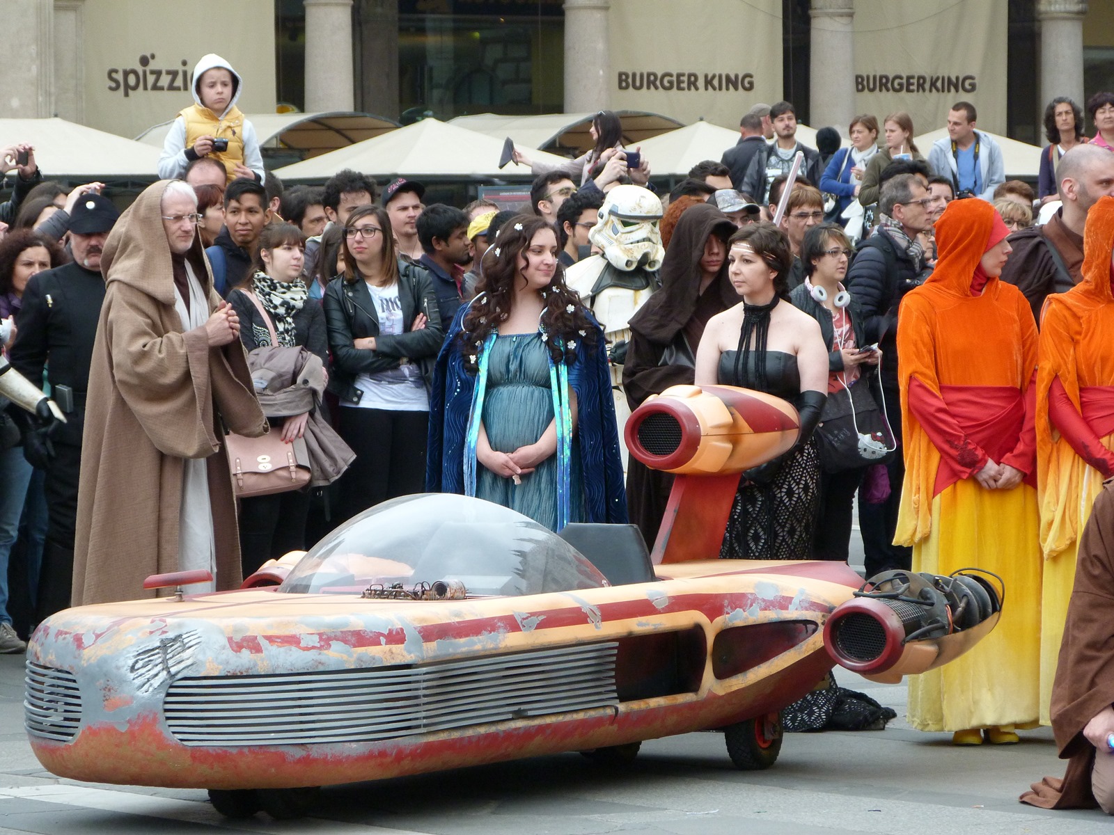 All'arrivo in piazza Duomo erano già innumerevoli i fan di tutte le età in attesa di vedere da vicino i propri personaggi preferiti e le prime spade laser si facevano già intravedere in mano a tanti bambini, ma non solo, mentre gli stormtrooper attendevano l'apparizione dalla Terrazza Mondadori di Darth Vader che ha salutato dall'alto.