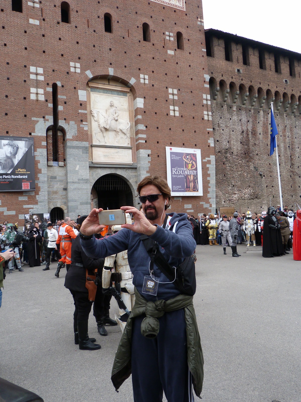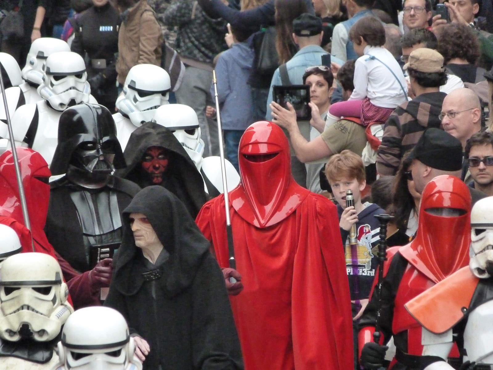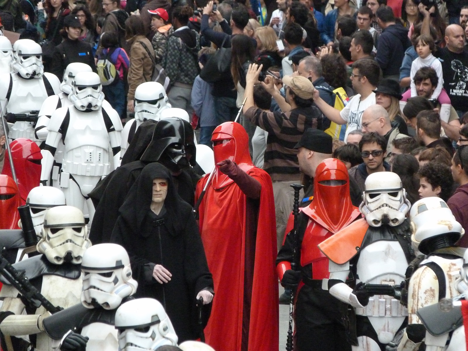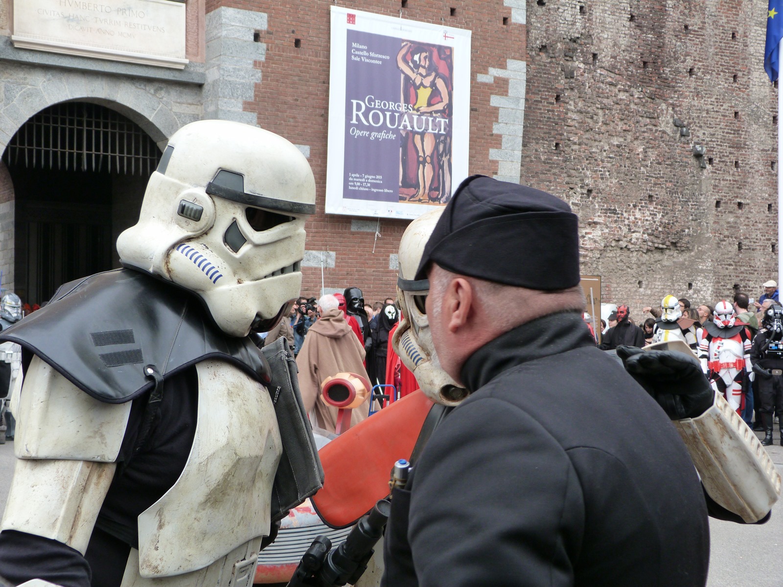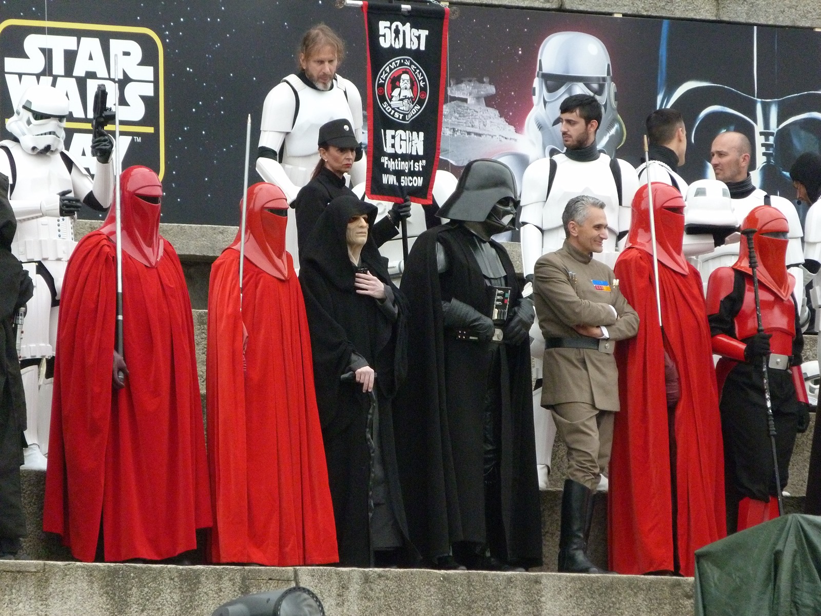 All'arrivo in piazza Duomo erano già innumerevoli i fan di tutte le età in attesa di vedere da vicino i propri personaggi preferiti e le prime spade laser si facevano già intravedere in mano a tanti bambini, ma non solo, mentre gli stormtrooper attendevano l'apparizione dalla Terrazza Mondadori di Darth Vader che ha salutato dall'alto.