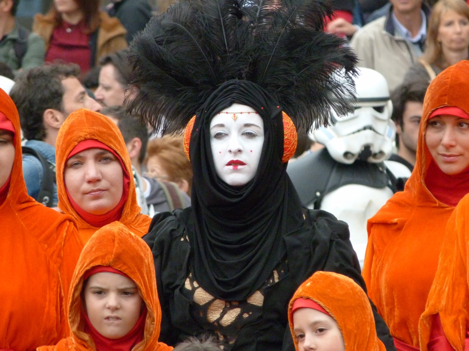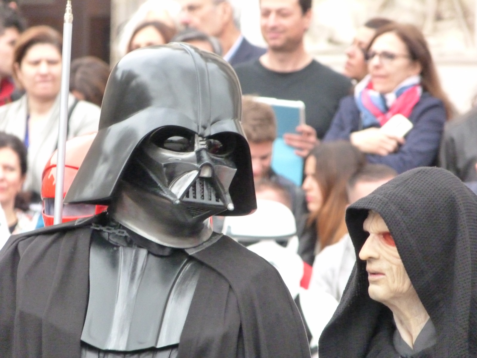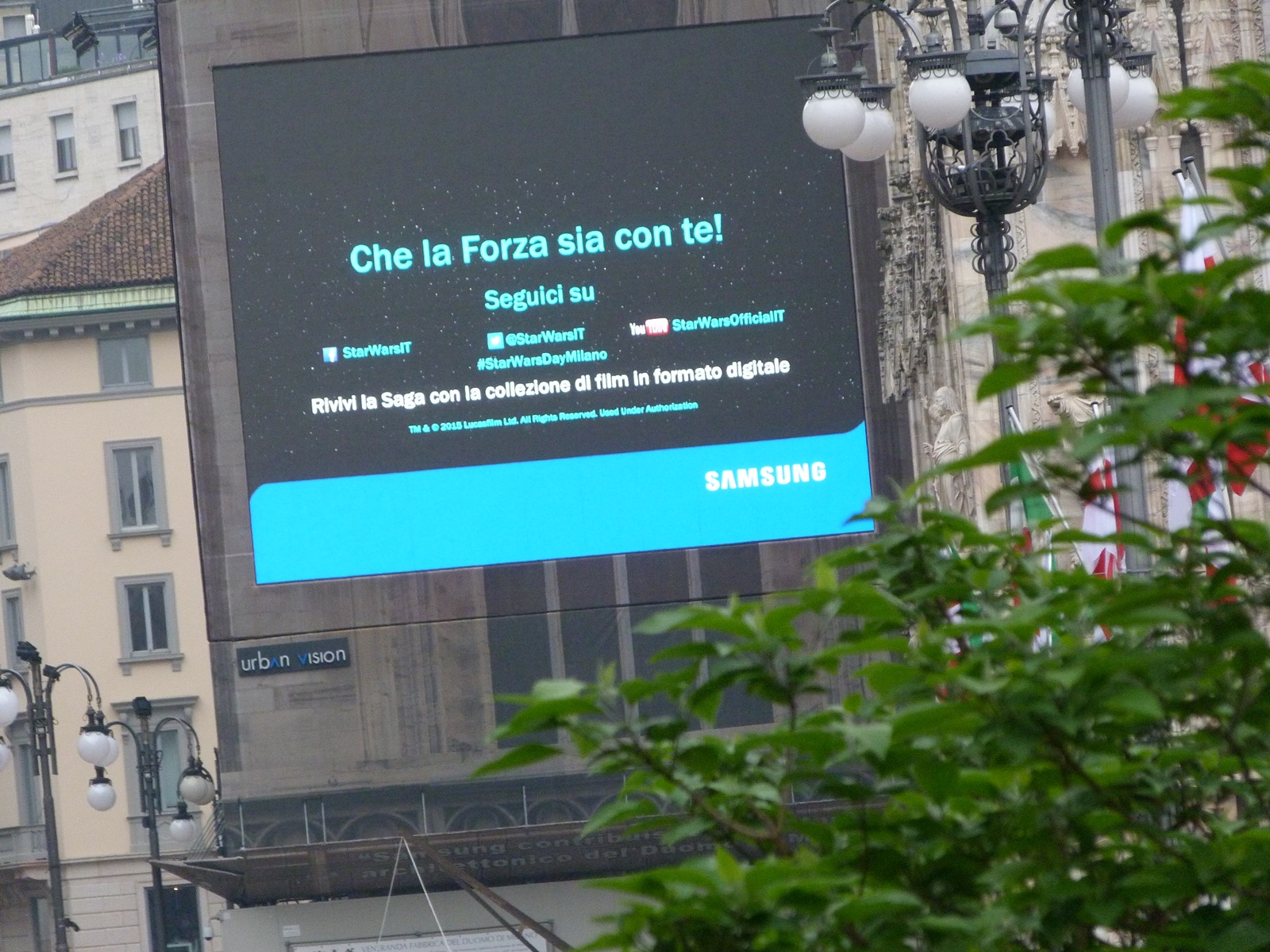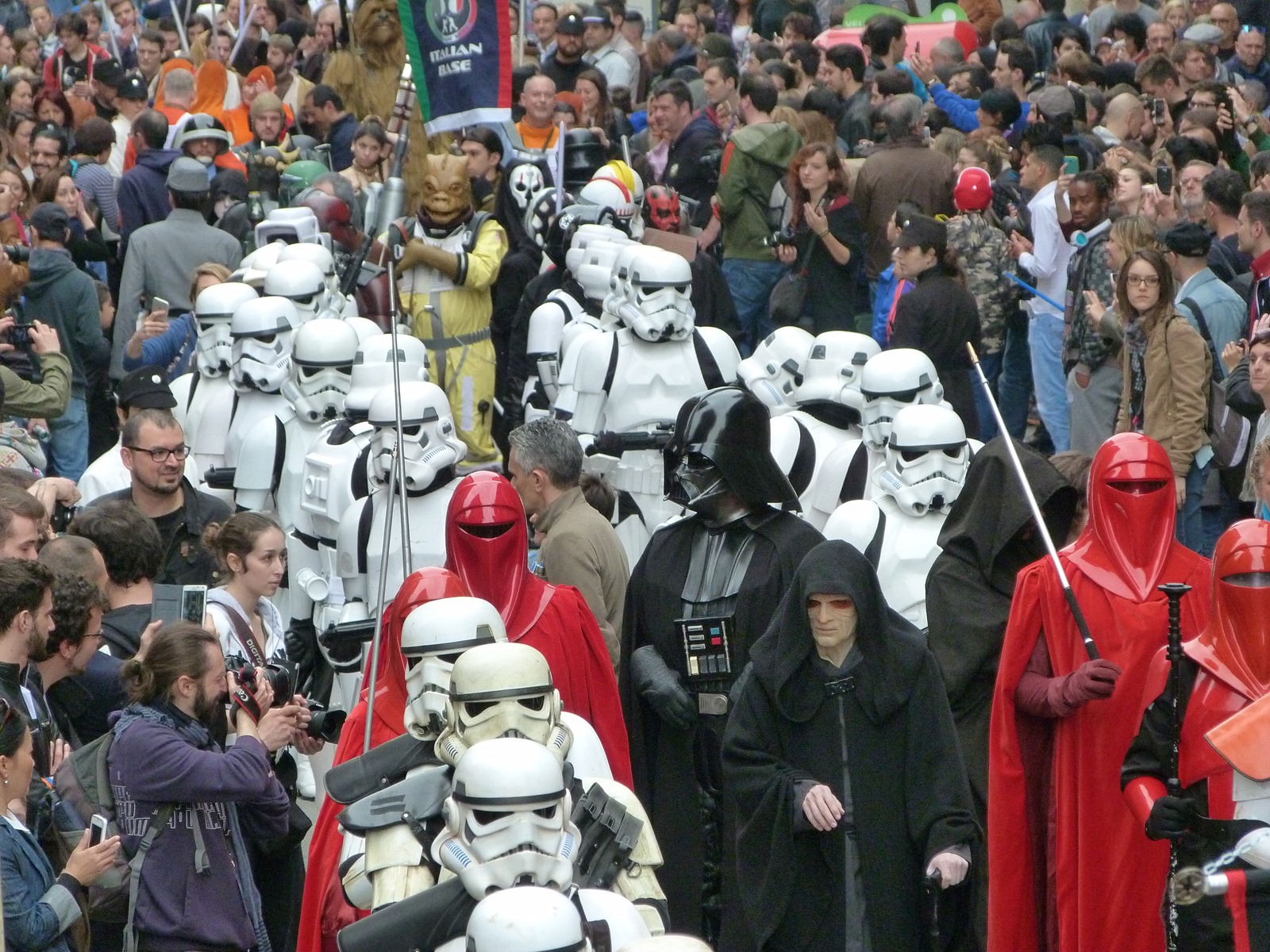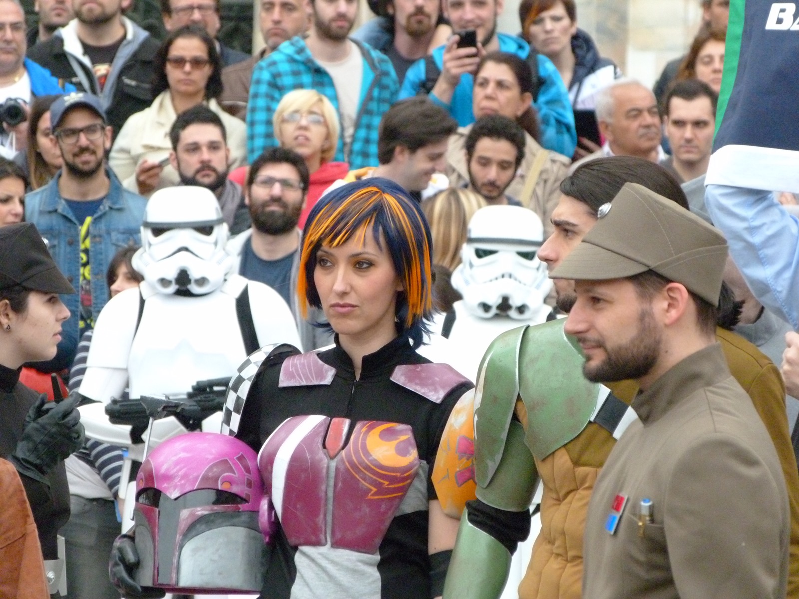 All'arrivo in piazza Duomo erano già innumerevoli i fan di tutte le età in attesa di vedere da vicino i propri personaggi preferiti e le prime spade laser si facevano già intravedere in mano a tanti bambini, ma non solo, mentre gli stormtrooper attendevano l'apparizione dalla Terrazza Mondadori di Darth Vader che ha salutato dall'alto.