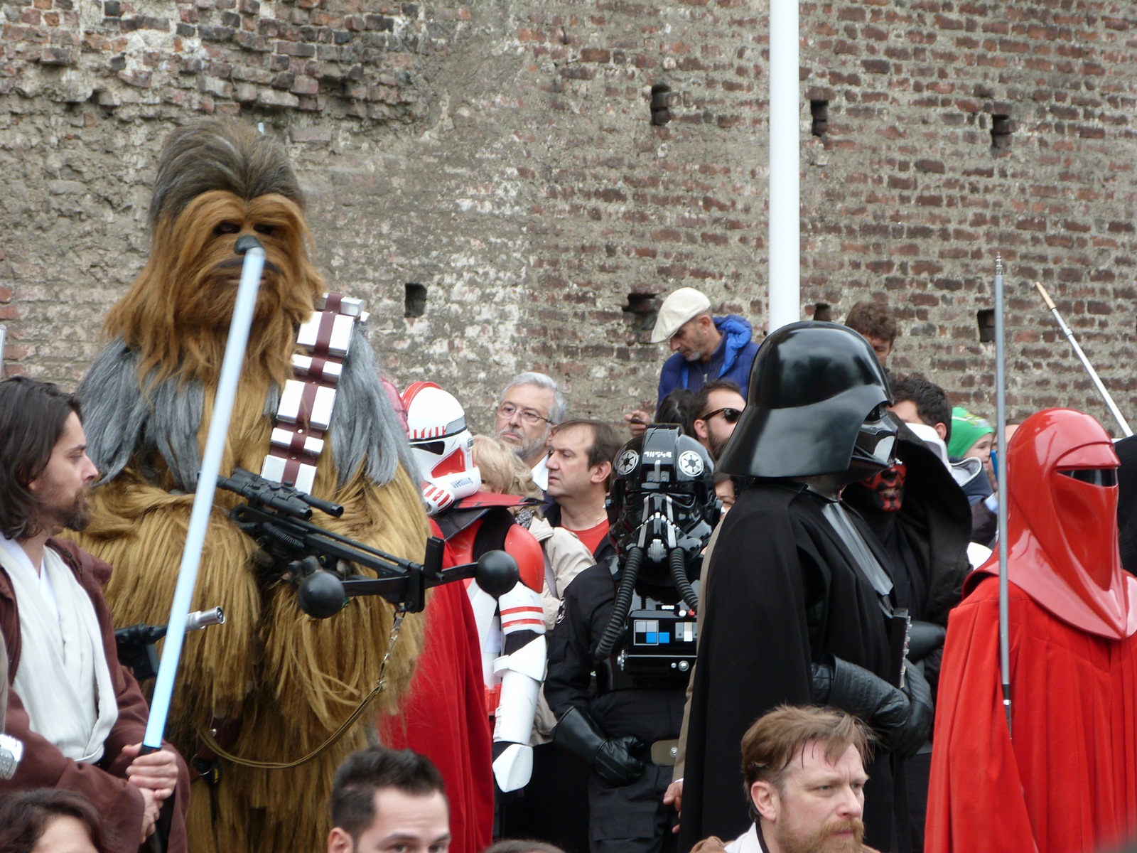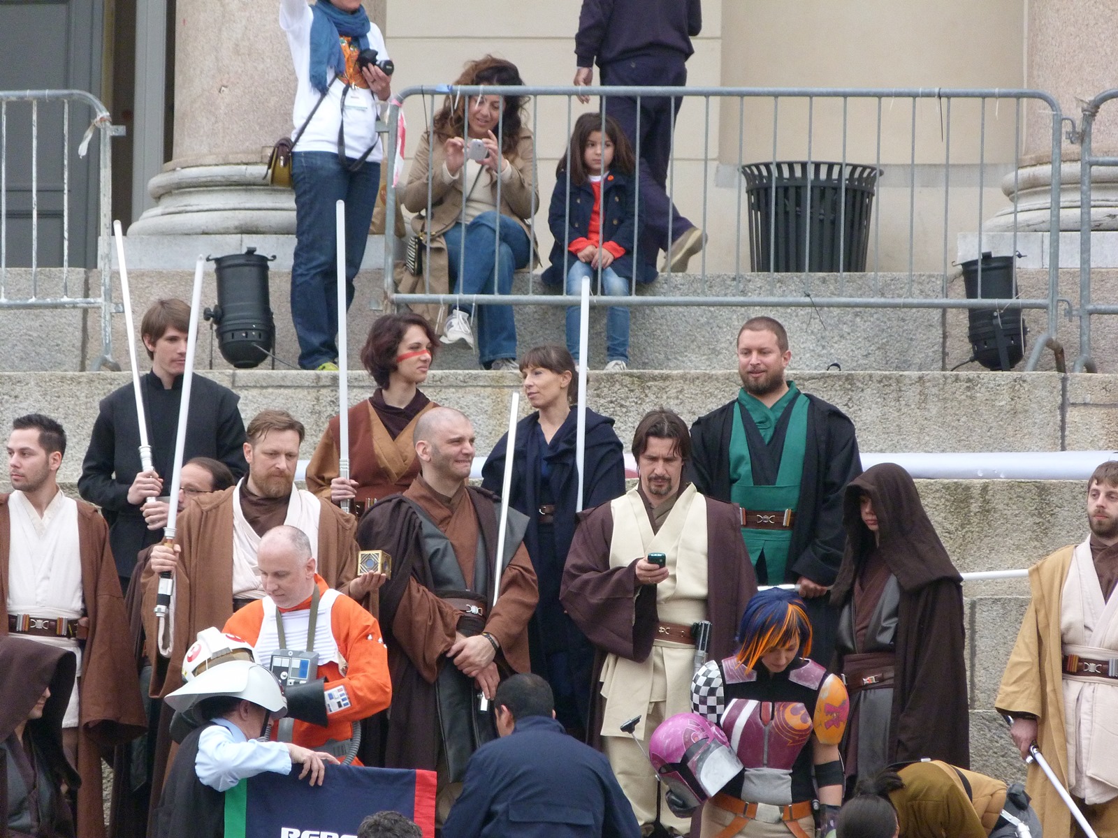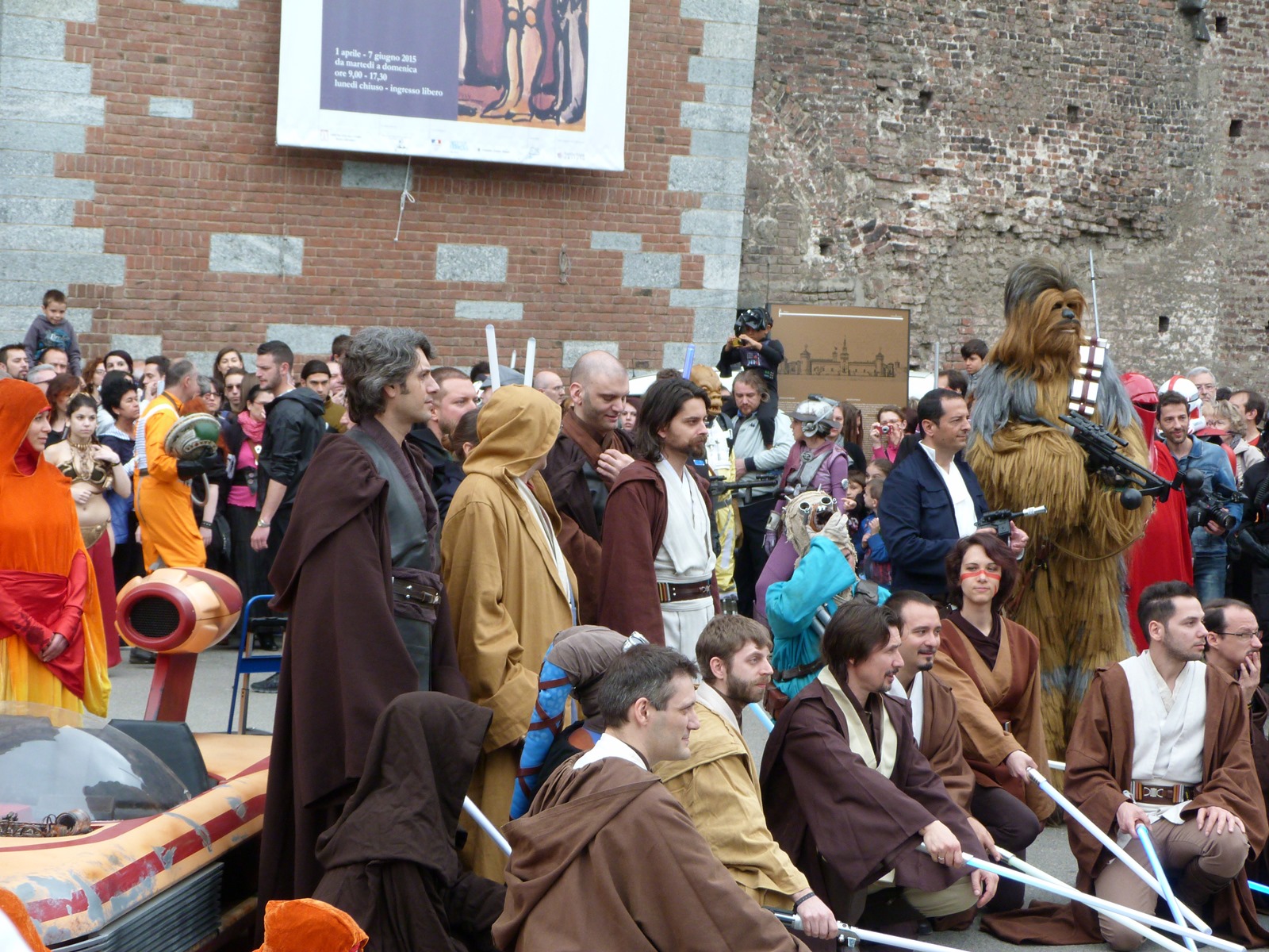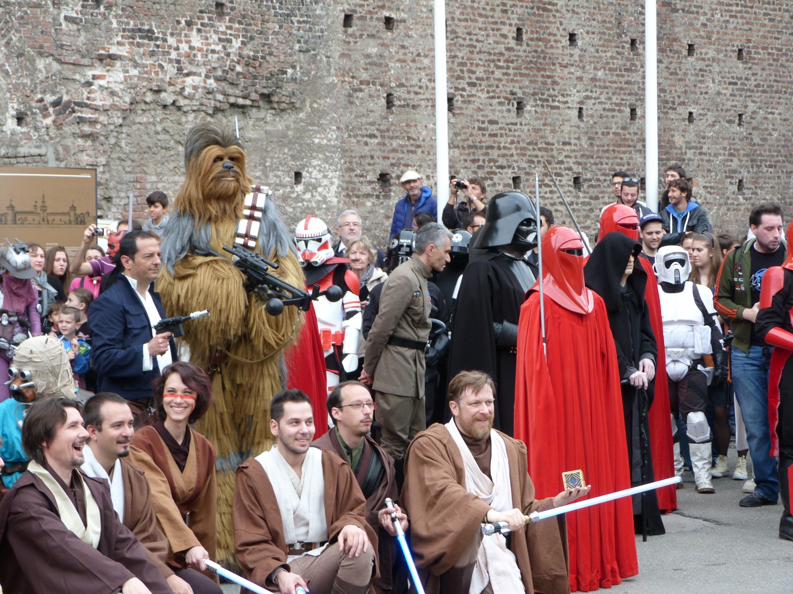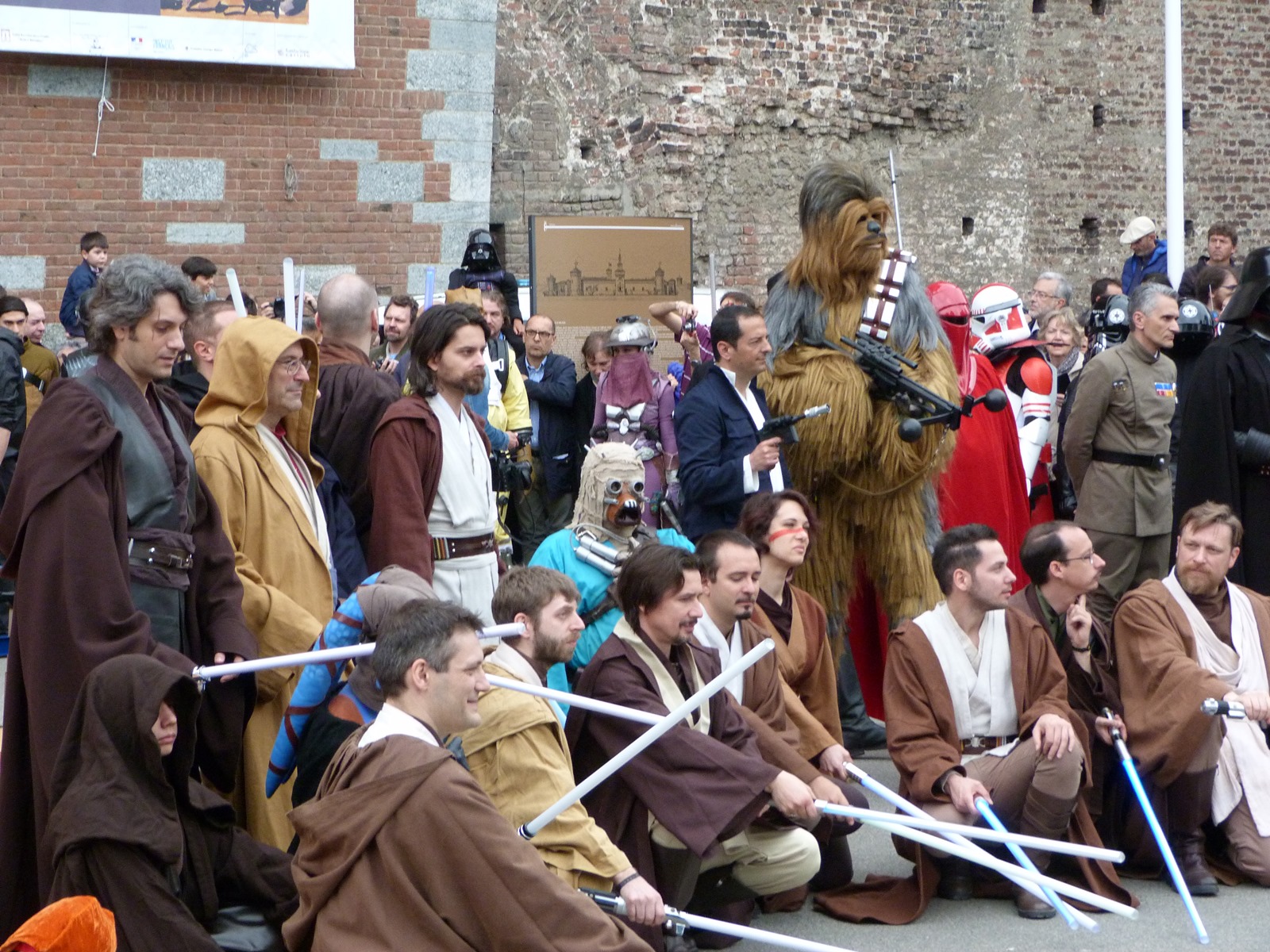 L'azione principale si è però svolta sul prato dove persone di ogni età, in costume o in abiti "civili", si è divertita a duellare con le spade laser o a immortalare l'arrivo dei cosplayer che hanno posato per gli ultimi scatti sulla gradinata, tra applausi, tanta ammirazione e qualche perplessità nel vedere insieme due Darth Vader e due Darth Maul.