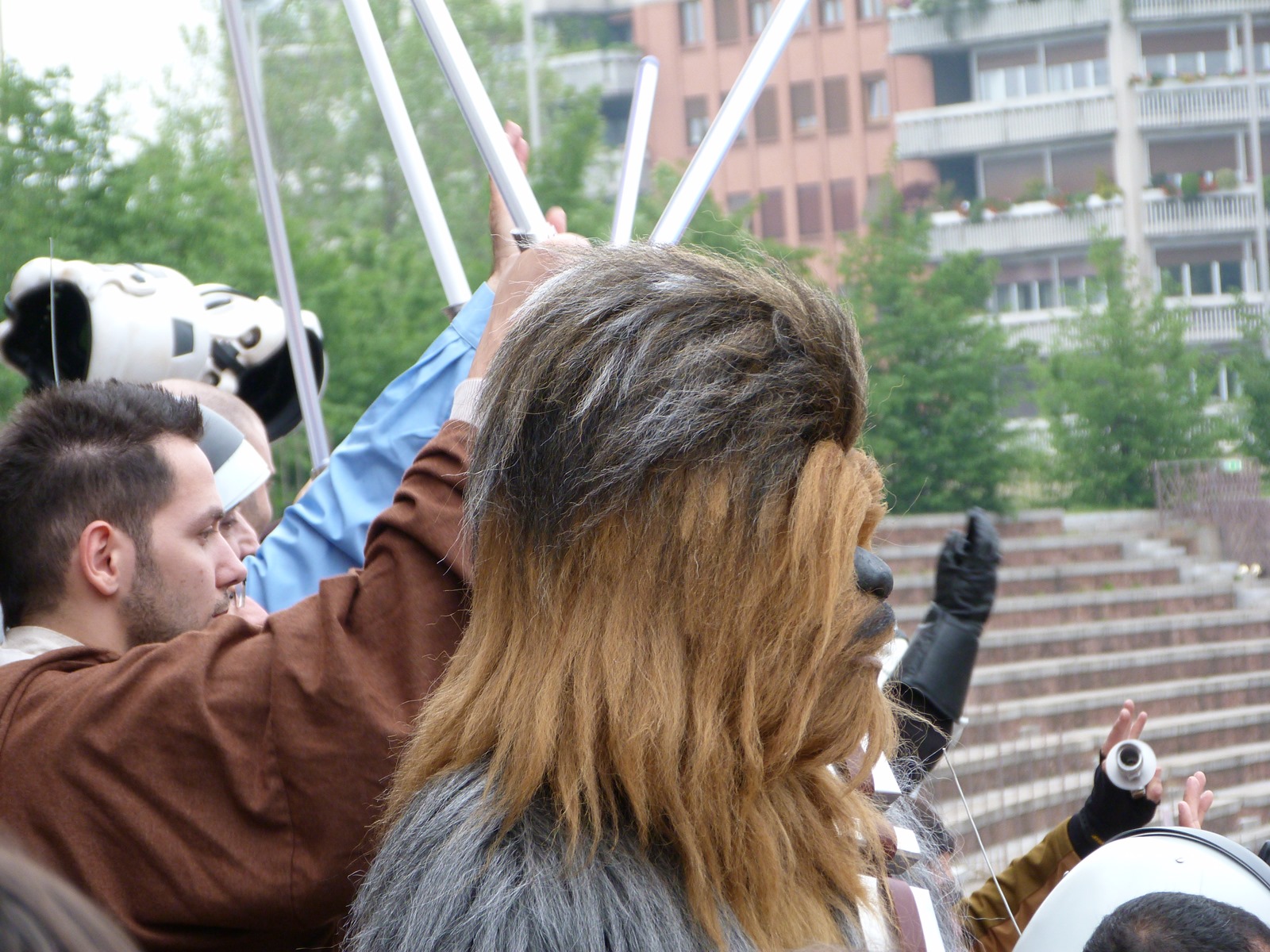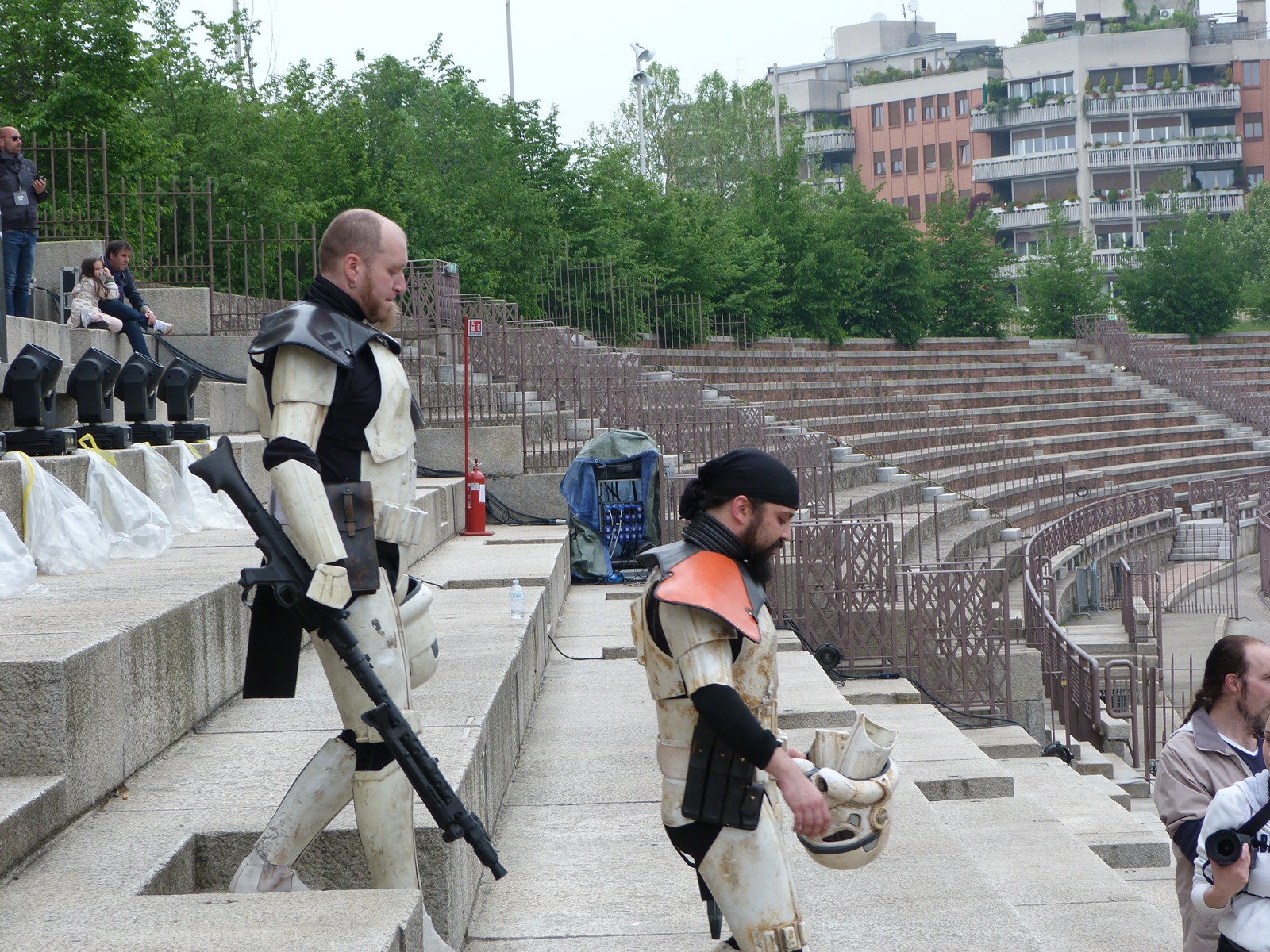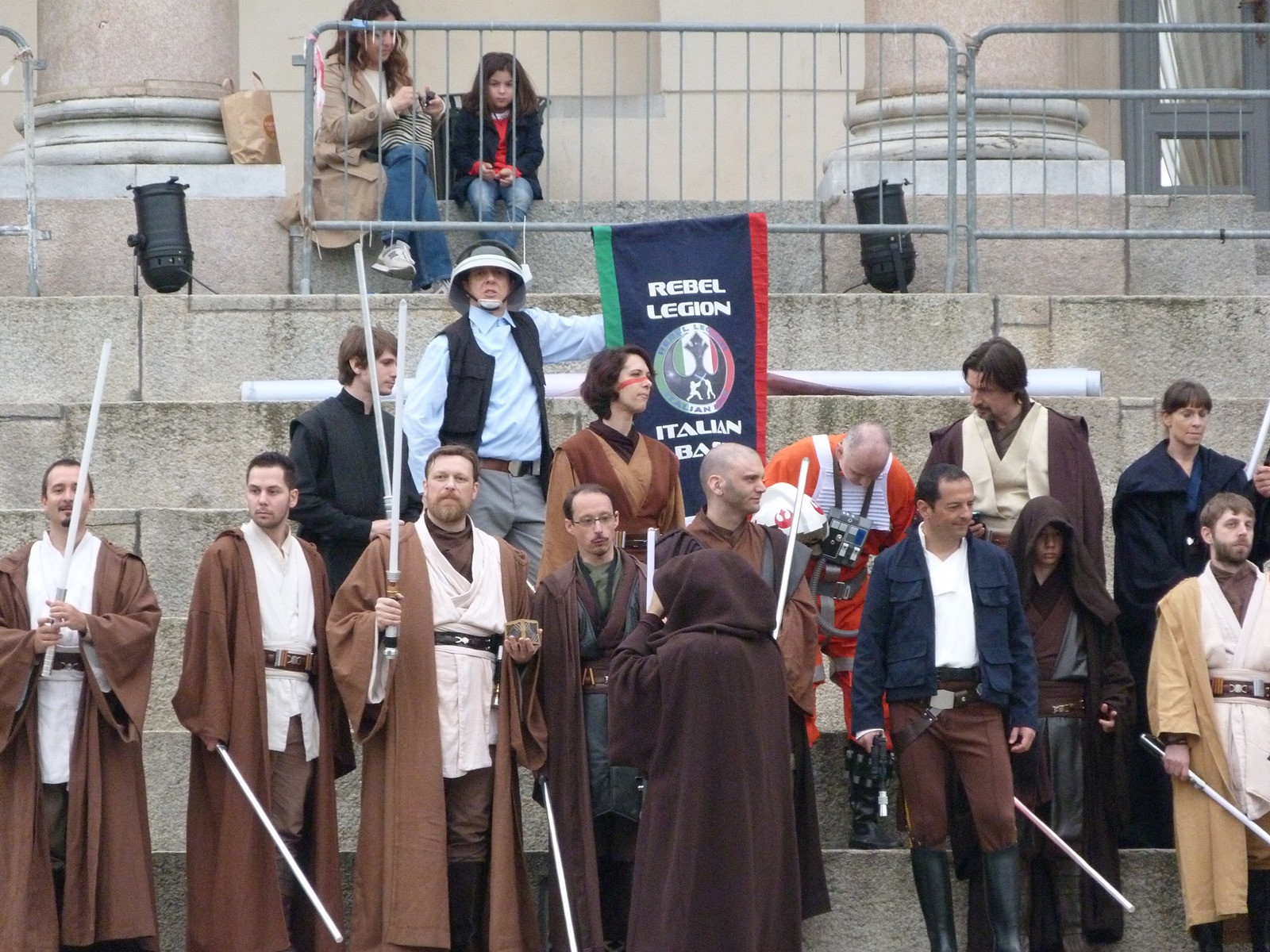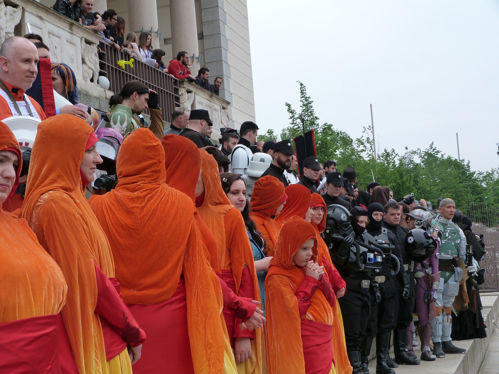 L'azione principale si è però svolta sul prato dove persone di ogni età, in costume o in abiti "civili", si è divertita a duellare con le spade laser o a immortalare l'arrivo dei cosplayer che hanno posato per gli ultimi scatti sulla gradinata, tra applausi, tanta ammirazione e qualche perplessità nel vedere insieme due Darth Vader e due Darth Maul.