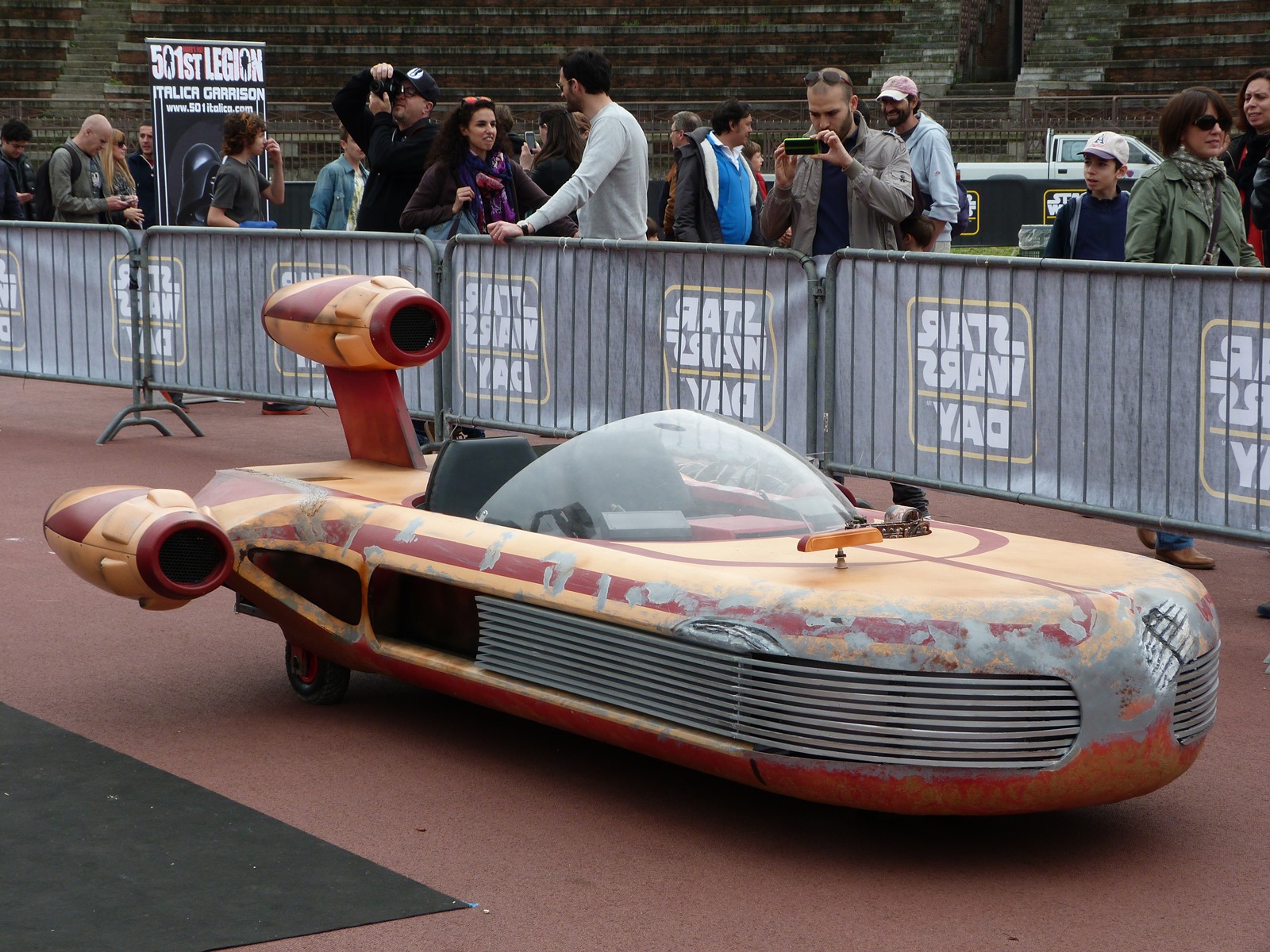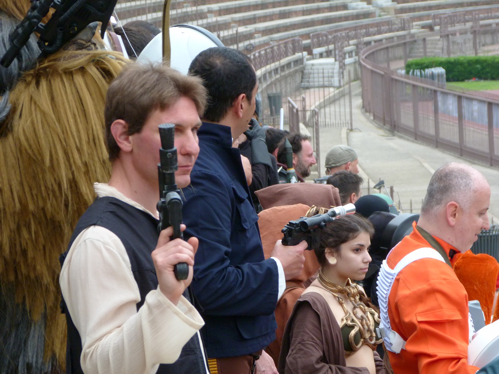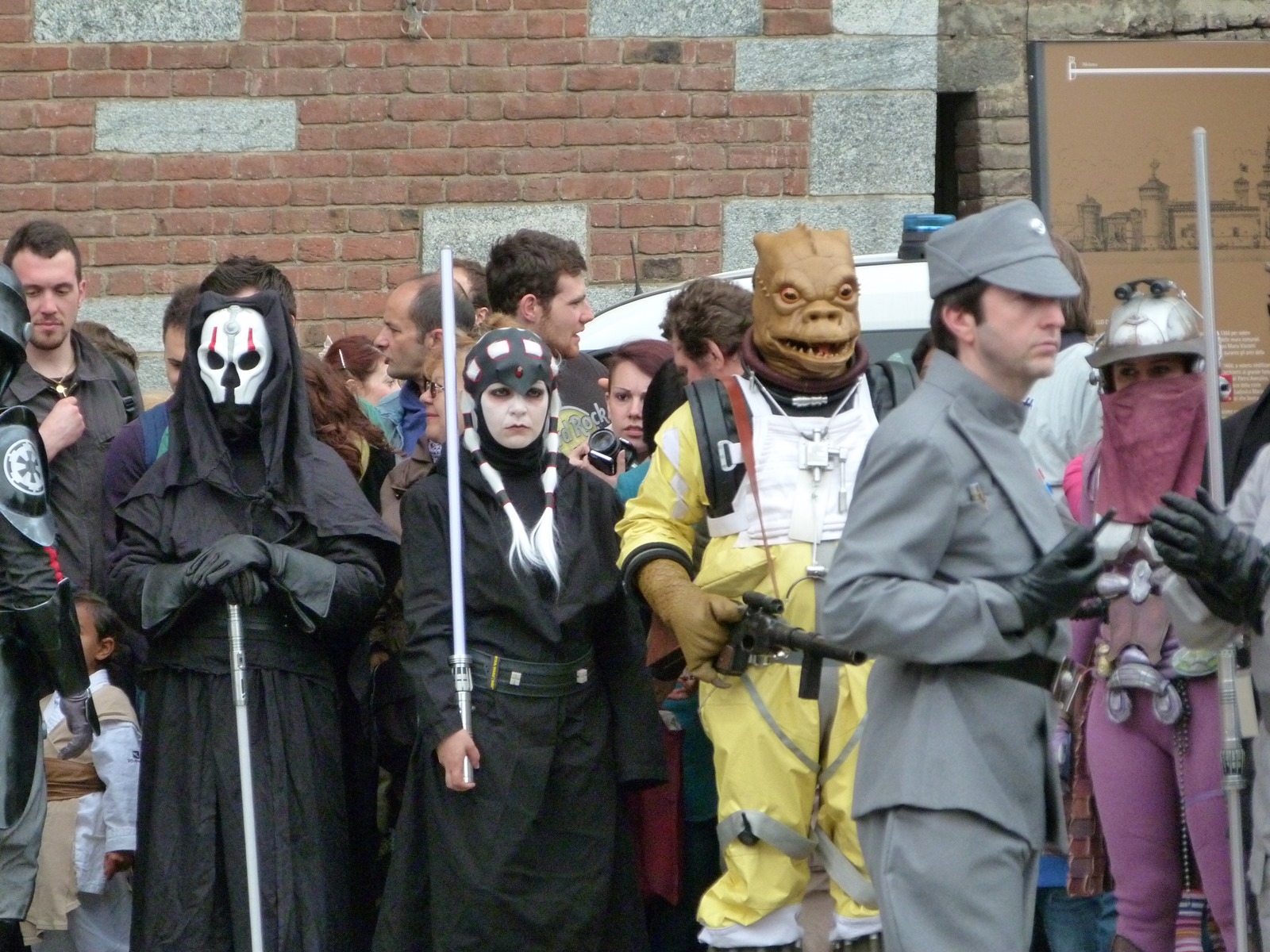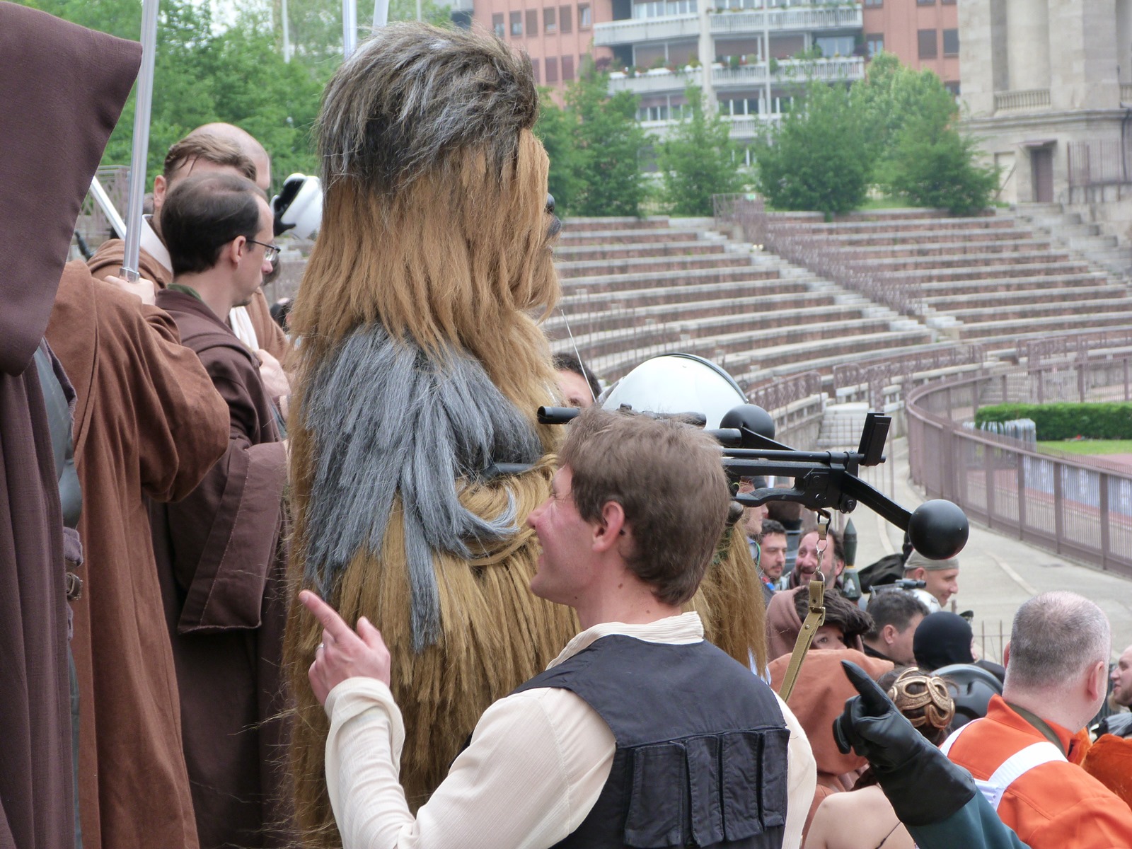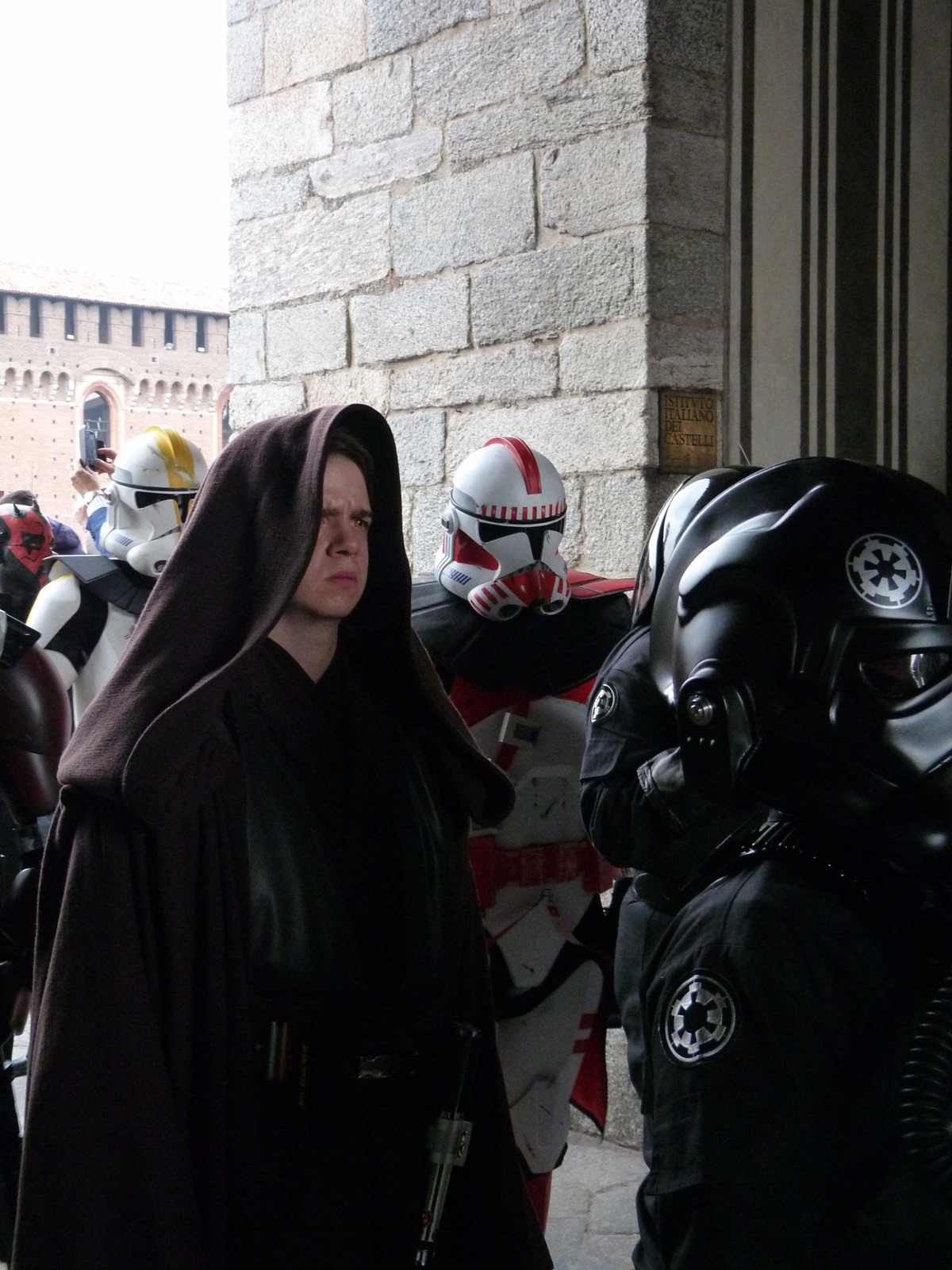 L'azione principale si è però svolta sul prato dove persone di ogni età, in costume o in abiti "civili", si è divertita a duellare con le spade laser o a immortalare l'arrivo dei cosplayer che hanno posato per gli ultimi scatti sulla gradinata, tra applausi, tanta ammirazione e qualche perplessità nel vedere insieme due Darth Vader e due Darth Maul.
