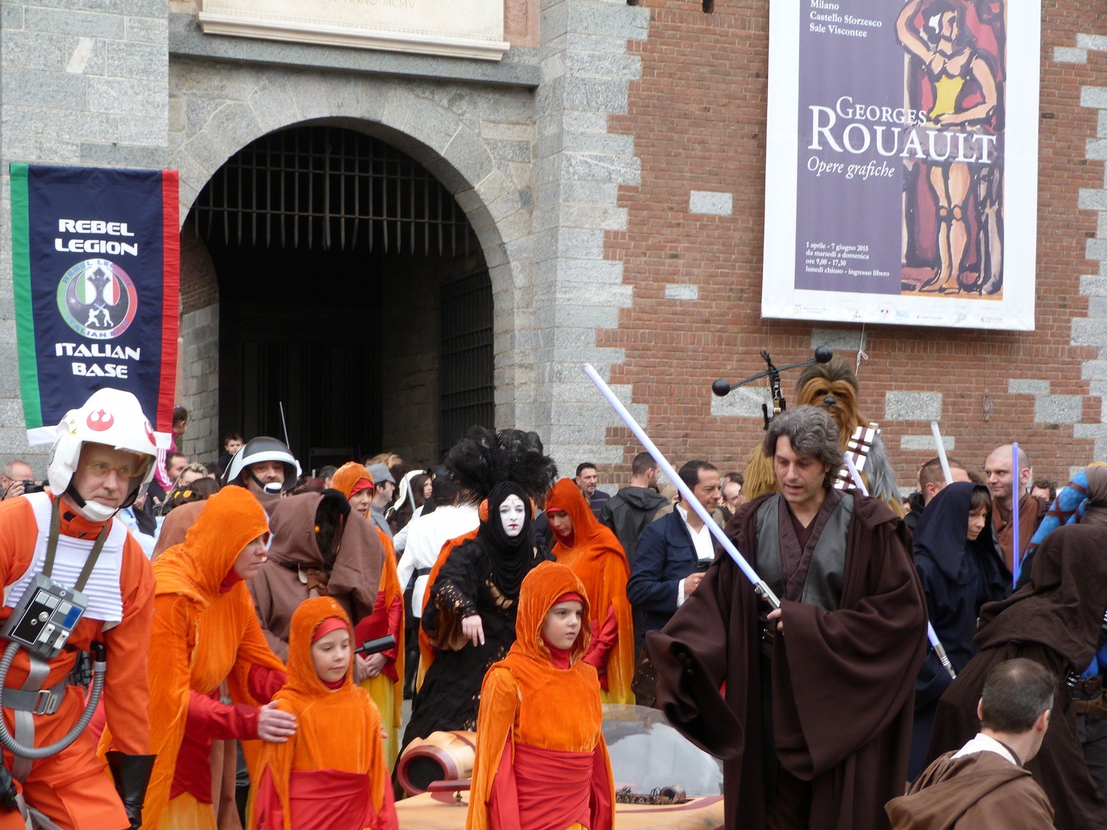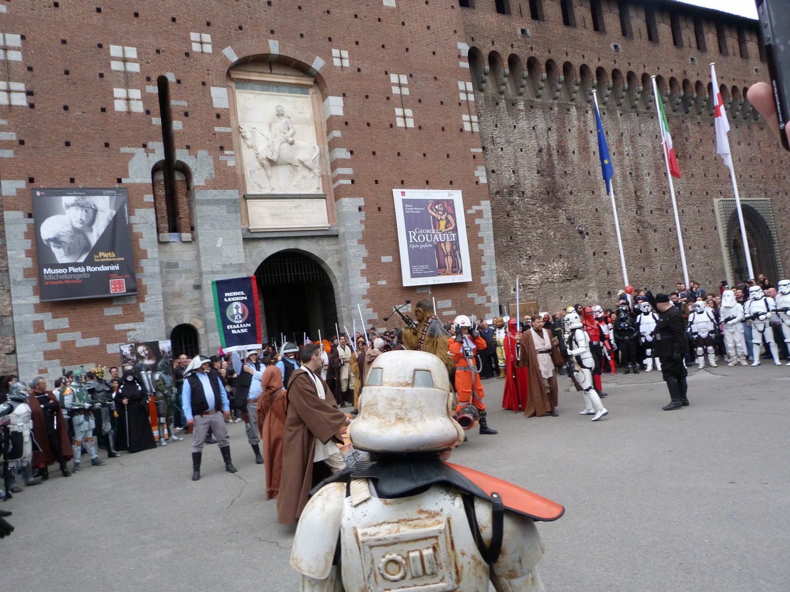 I membri della 501st Italica Garrison e della Rebel Legion Italian Base hanno quindi iniziato a sfilare passando per il parco Sempione e giungendo alla bellissima cornice offerta dal Castello Sforzesco, dove si sono schierati per la gioia delle tante persone presenti.