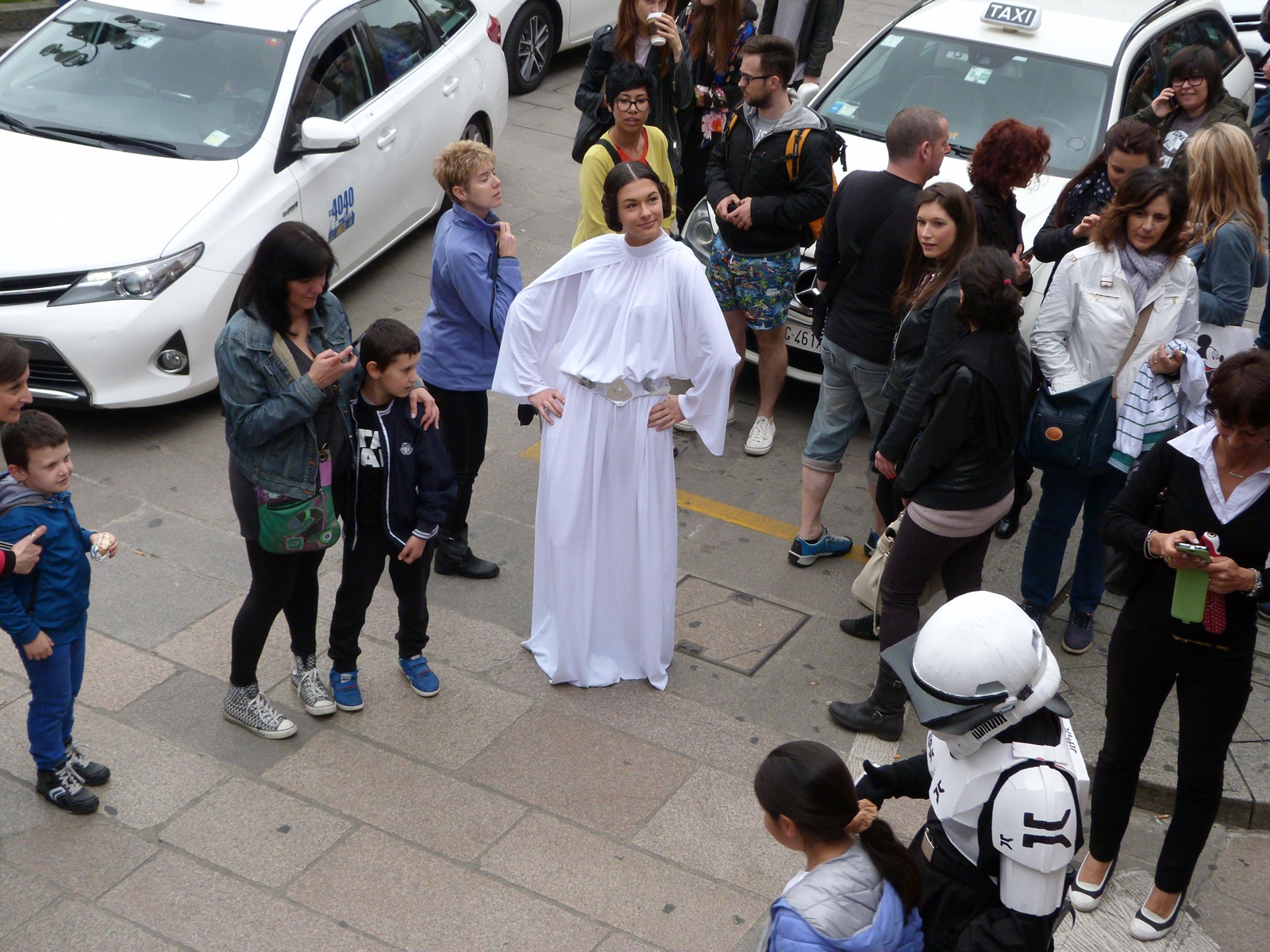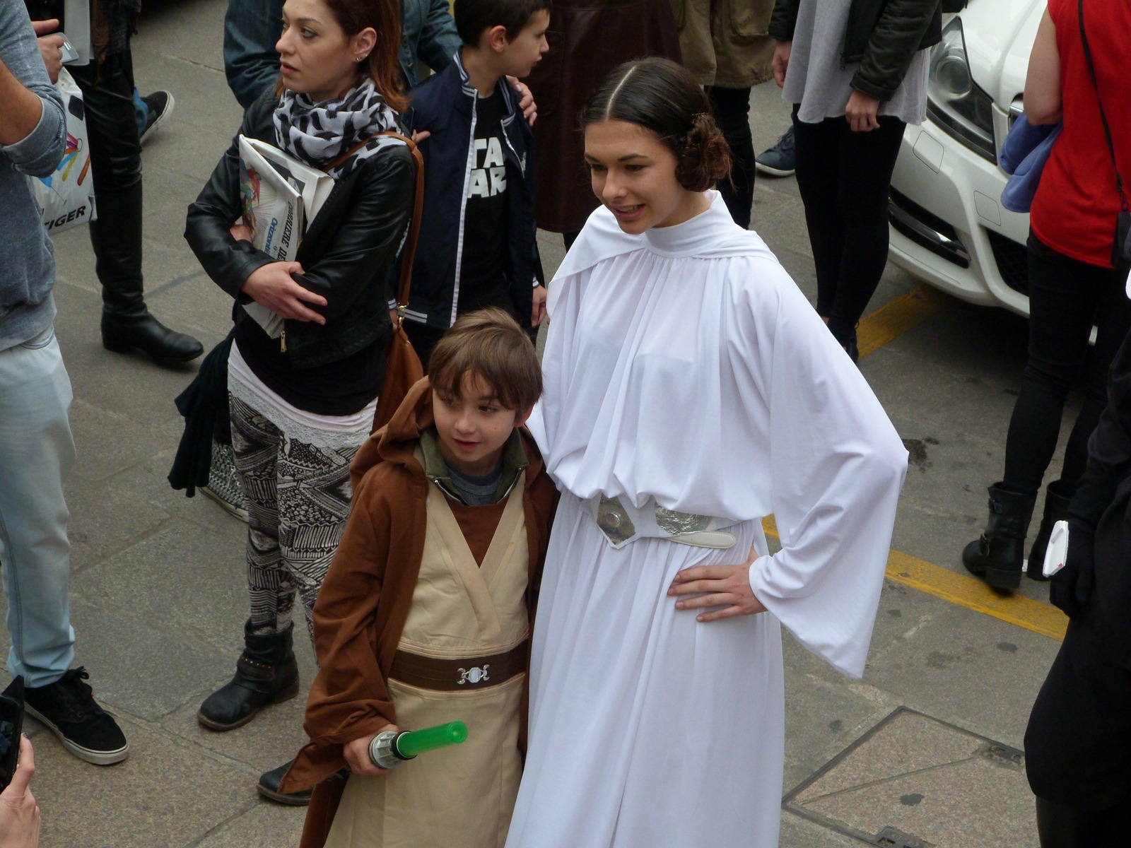 All'esterno dell'area la fila per entrare si è allungata velocemente e i cavalieri jedi, grandi e piccoli, sono stati avvistati un po' in ogni angolo della città, spesso suscitando un po' di sorpresa da parte dei turisti.
