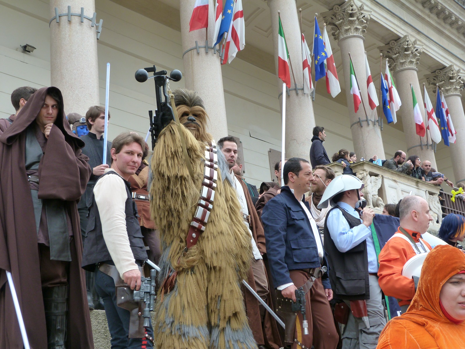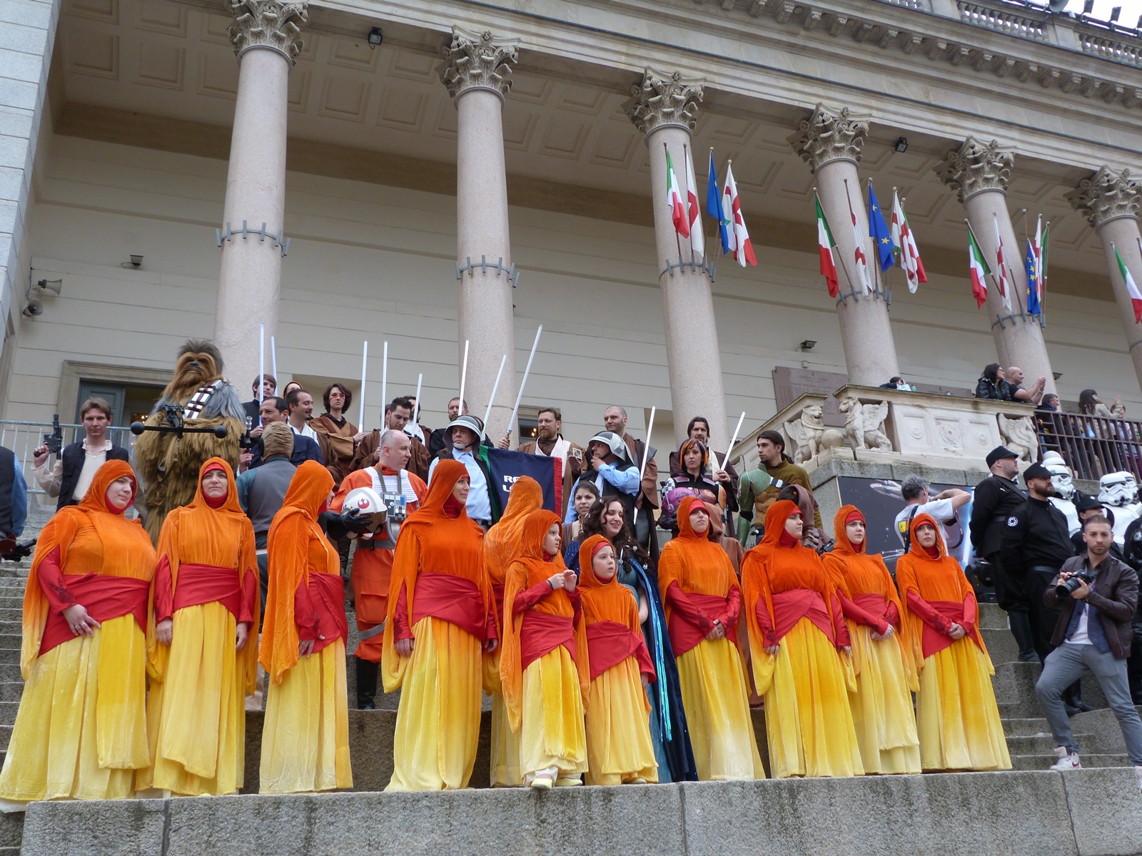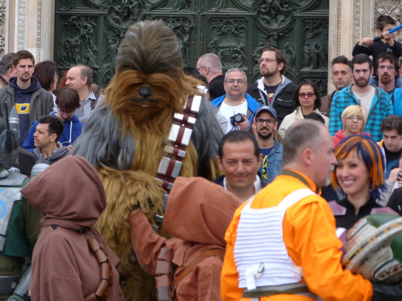 E' stata poi una vera gioia per i turisti ignari delle celebrazioni vedere riuniti tutti i cosplayer posare davanti al Duomo di Milano e non sono mancati i momenti emozionanti, come quando è stata urlata la già celebre frase "Siamo a casa Chewie", o divertenti quando un'intraprendente signora ha provato a fare photobombing alle spalle di Darth Vader che posava per gli scatti ufficiali dello Star Wars Day.