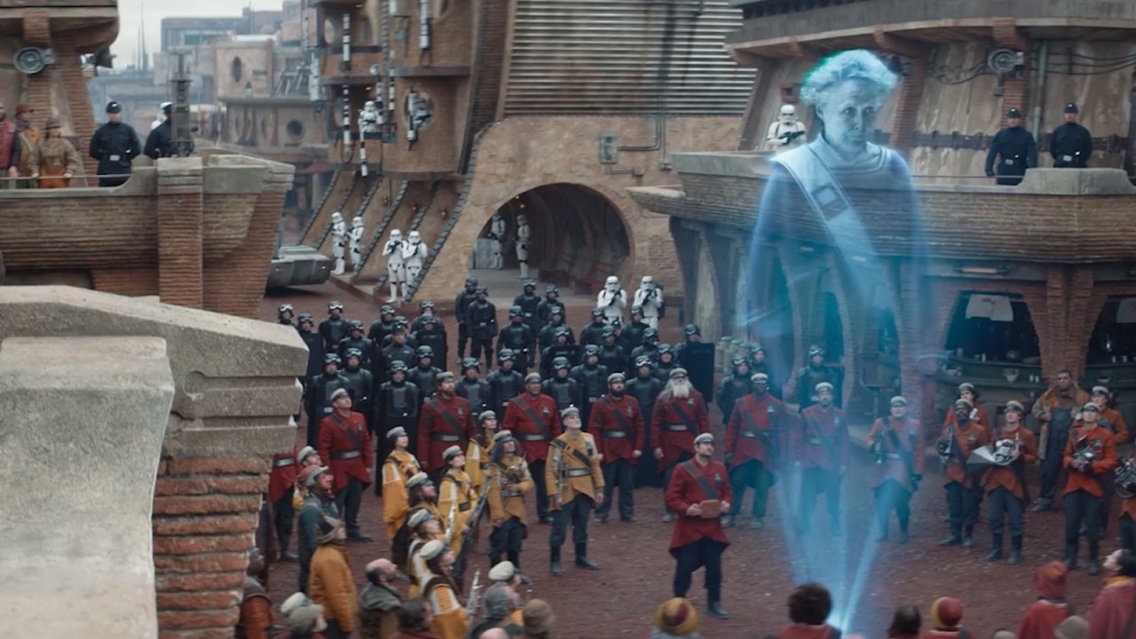 Tuttavia, "la Disney non ci ha permesso di usarlo", ha confermato il regista Benjamin Caron all'outlet. "Così l'abbiamo cambiato in 'combattete l'Impero'. Ricordo di aver telefonato a Tony Gilroy dicendogli: 'Riusciremo a farla franca?'".