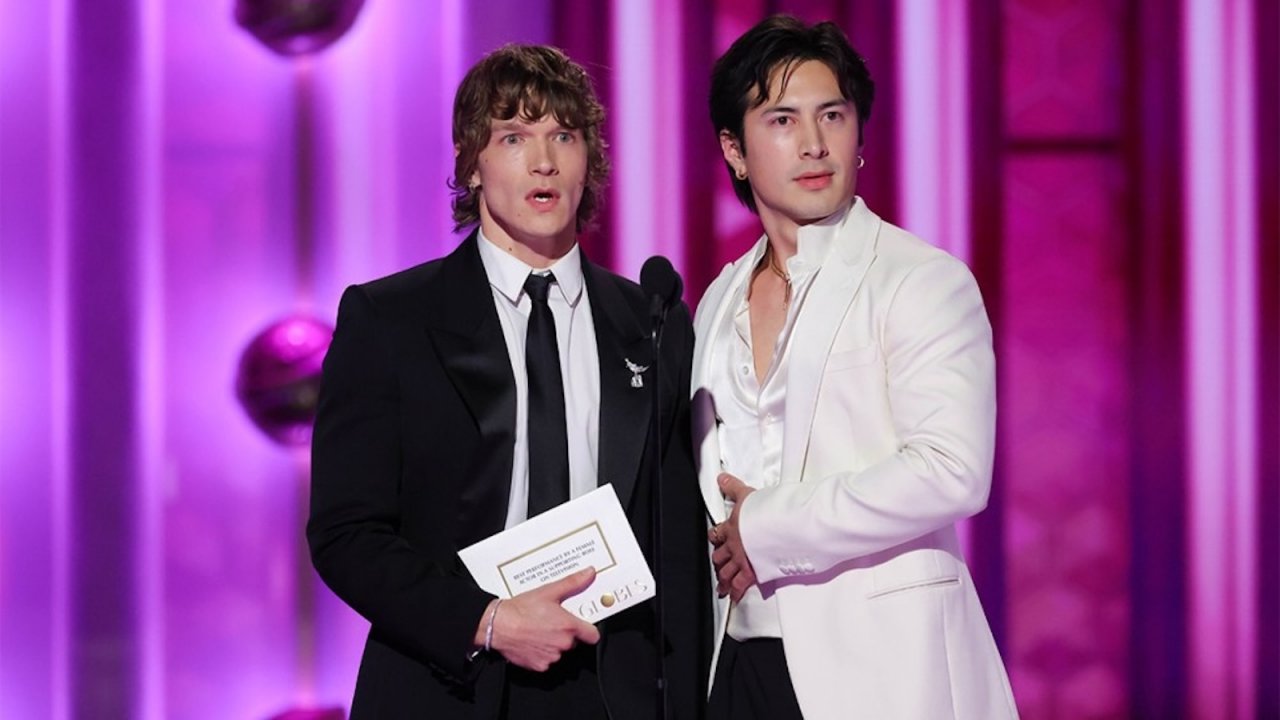 I due, saliti sul palco sulle note di "Pink Pony Club" di Chappell Roan, hanno presentato il premio come Miglior attore non protagonista in una serie TV. "Scusate, è un po' snervante essere qui ai nostri primi Golden Globes", ha detto Storrie con un brivido teatrale.