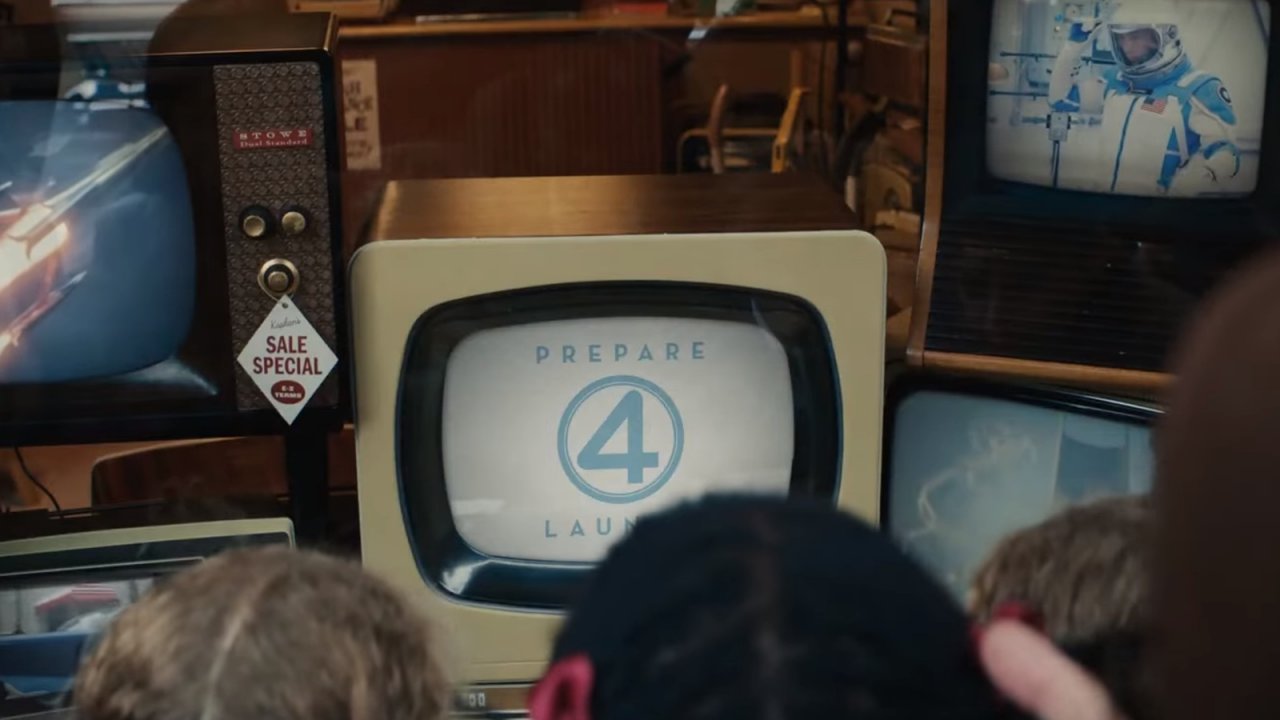 Nel filmato si possono poi vedere dei ragazzini correre verso la vetrina di un negozio di elettrodomestici, dove vogliono assistere al lancio nello spazio del team guidato da Ben Grimm (Ebon Moss-Bachrach).
