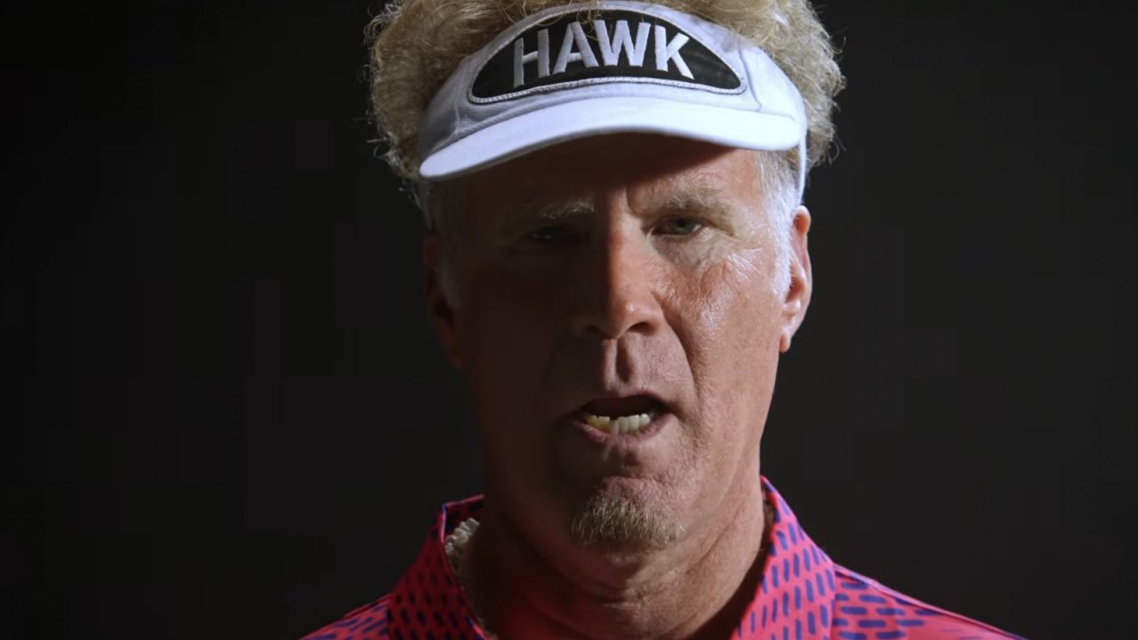 Il filmato mostra Ferrell nei panni del golfista Lonnie "The Hawk" Hawkins, che indossa una maglietta da golf rosa shocking e una visiera bianca con la scritta 'Hawk' sui suoi riccioli biondo platino.